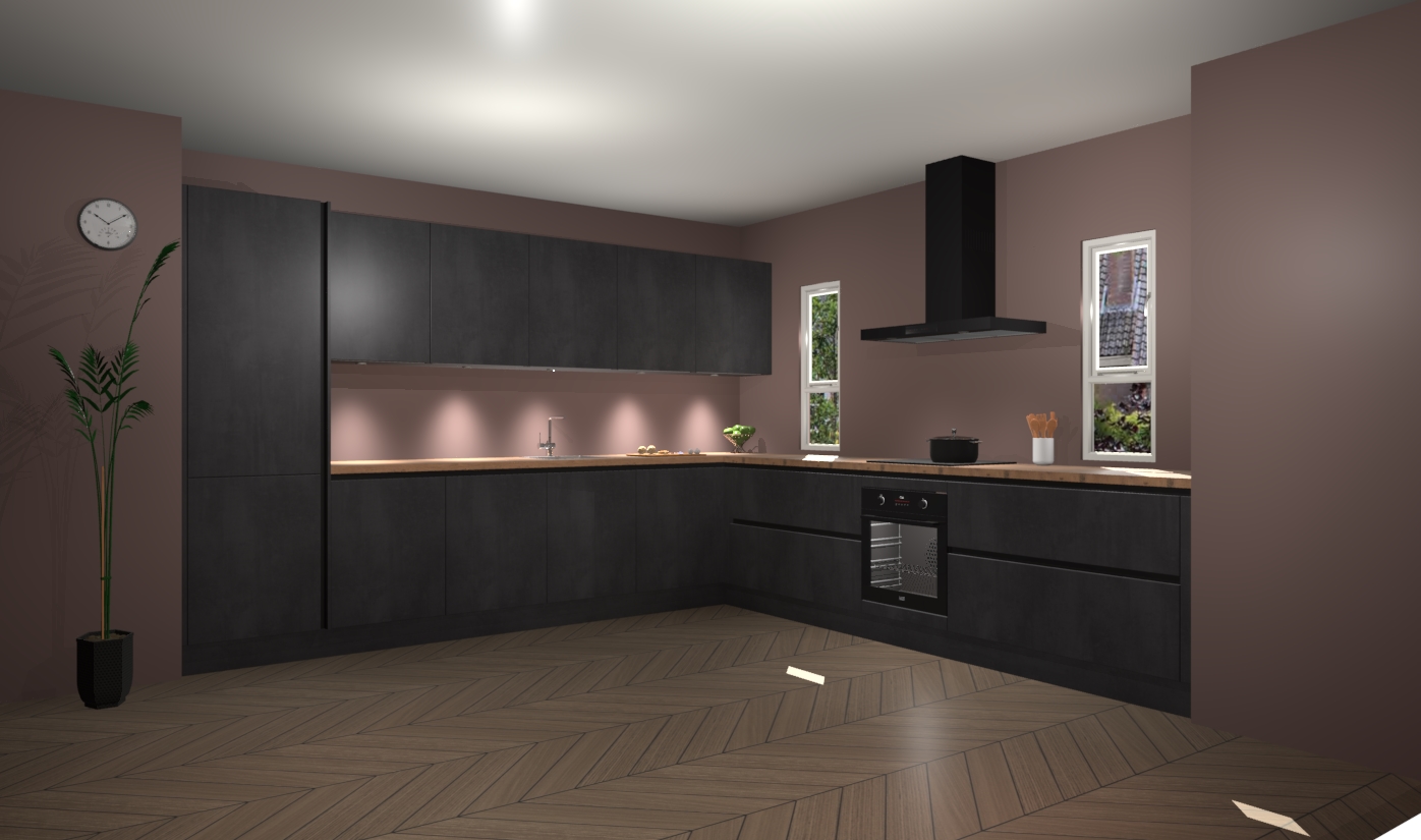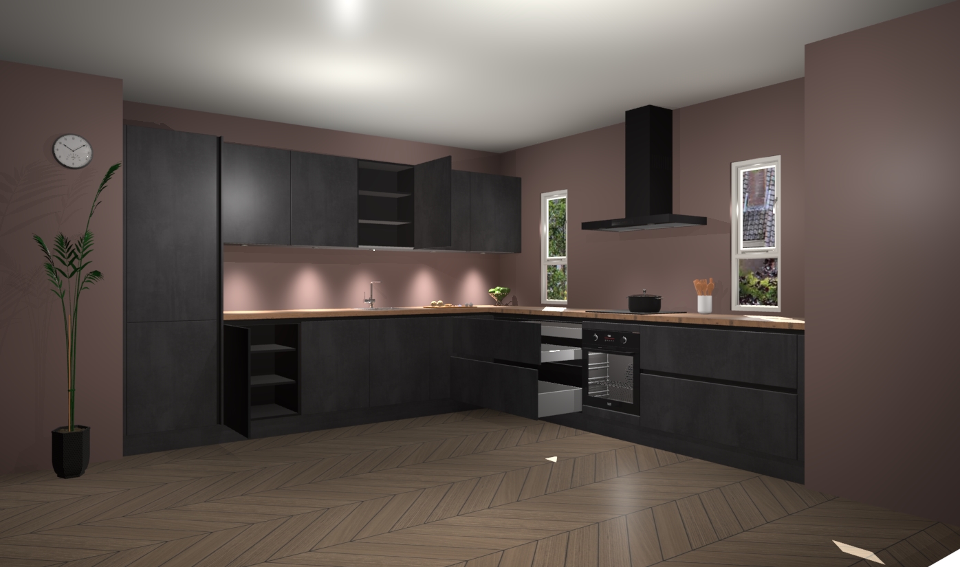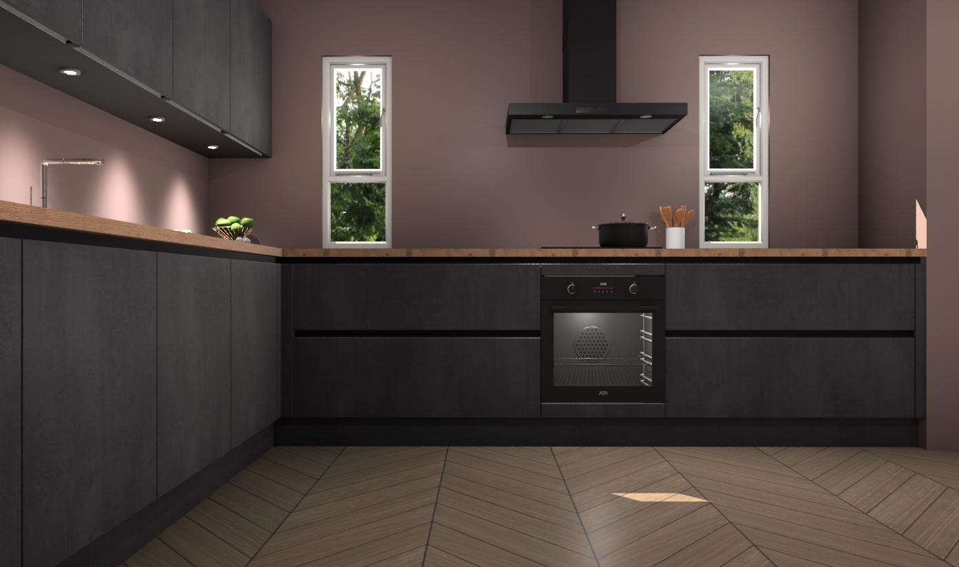 De beton zwarte greeploze keuken is een ideale hoekkeuken en heeft alle functies en apparatuur die u maar nodig kunt hebben. Bij de bestelling krijgt u een oven, inductiekookplaat, afzuigkap, vaatwasser en koelkast - deze kunnen desgewenst eenvoudig worden uitgebreid naar AEG na bestellen. Elke kast wordt ook voor gemonteerd geleverd met soft close deuren die jarenlang gebruik beloven. Stelt u zich voor dat u geen gedoe heeft met vervelende montage - vanaf het moment dat u uw bestelling plaats, duurt het slechts 7 weken voor het bij u thuis geleverd wordt.