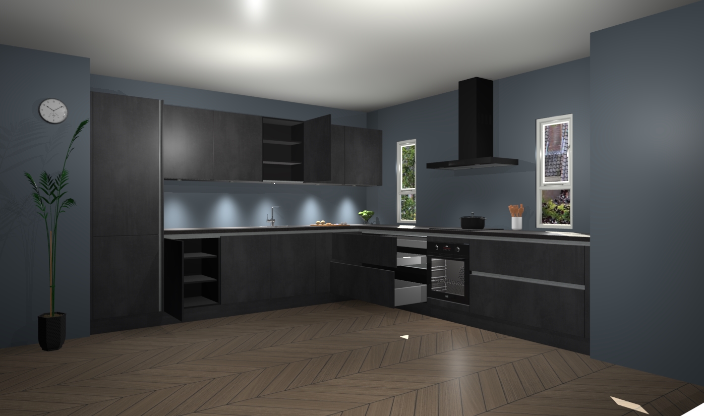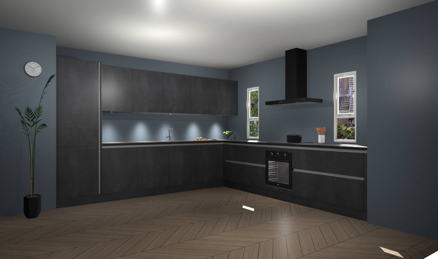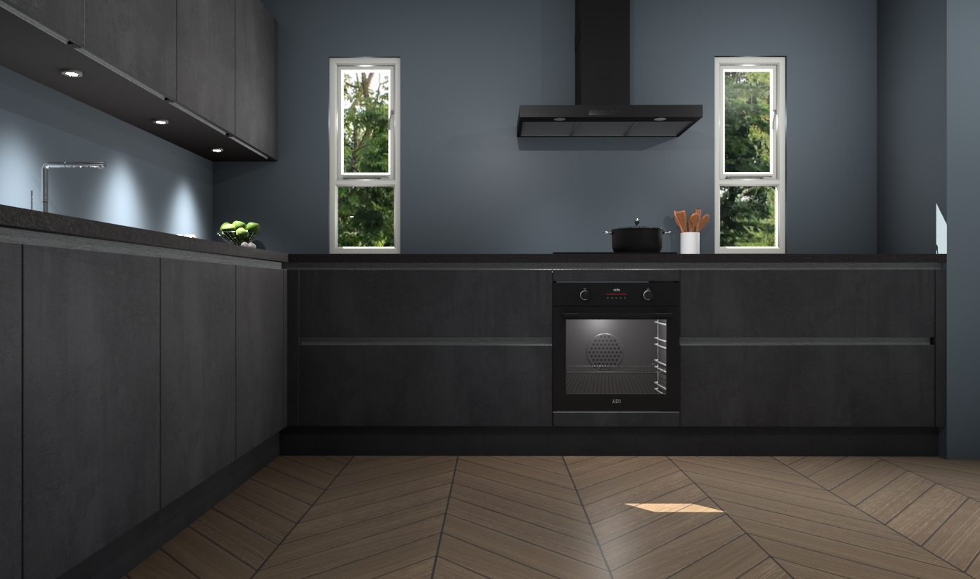 De beton zwarte greeploze keuken is een ideale hoekkeuken en heeft alle functies en apparatuur die u maar nodig kunt hebben. Bij de bestelling krijgt u een oven, inductiekookplaat, afzuigkap, vaatwasser en koelkast - deze kunnen desgewenst eenvoudig worden uitgebreid naar AEG na bestellen. Elke kast wordt ook voor gemonteerd geleverd met soft close deuren die jarenlang gebruik beloven. Stelt u zich voor dat u geen gedoe heeft met vervelende montage - vanaf het moment dat u uw bestelling plaats, duurt het slechts 7 weken voor het bij u thuis geleverd wordt.