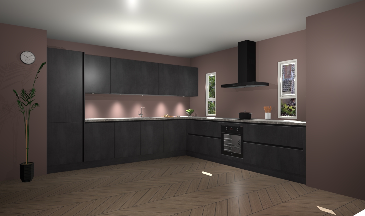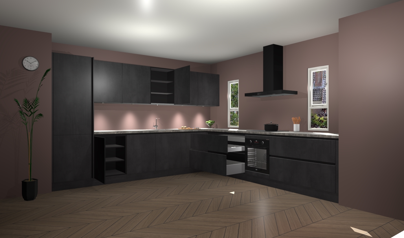 De beton zwarte greeploze keuken is een ideale hoekkeuken en heeft alle functies en apparatuur die u maar nodig kunt hebben. Bij de bestelling krijgt u een oven, inductiekookplaat, afzuigkap, vaatwasser en koelkast - deze kunnen desgewenst eenvoudig worden uitgebreid naar AEG na bestellen. Elke kast wordt ook voor gemonteerd geleverd met soft close deuren die jarenlang gebruik beloven. Stelt u zich voor dat u geen gedoe heeft met vervelende montage - vanaf het moment dat u uw bestelling plaats, duurt het slechts 7 weken voor het bij u thuis geleverd wordt.