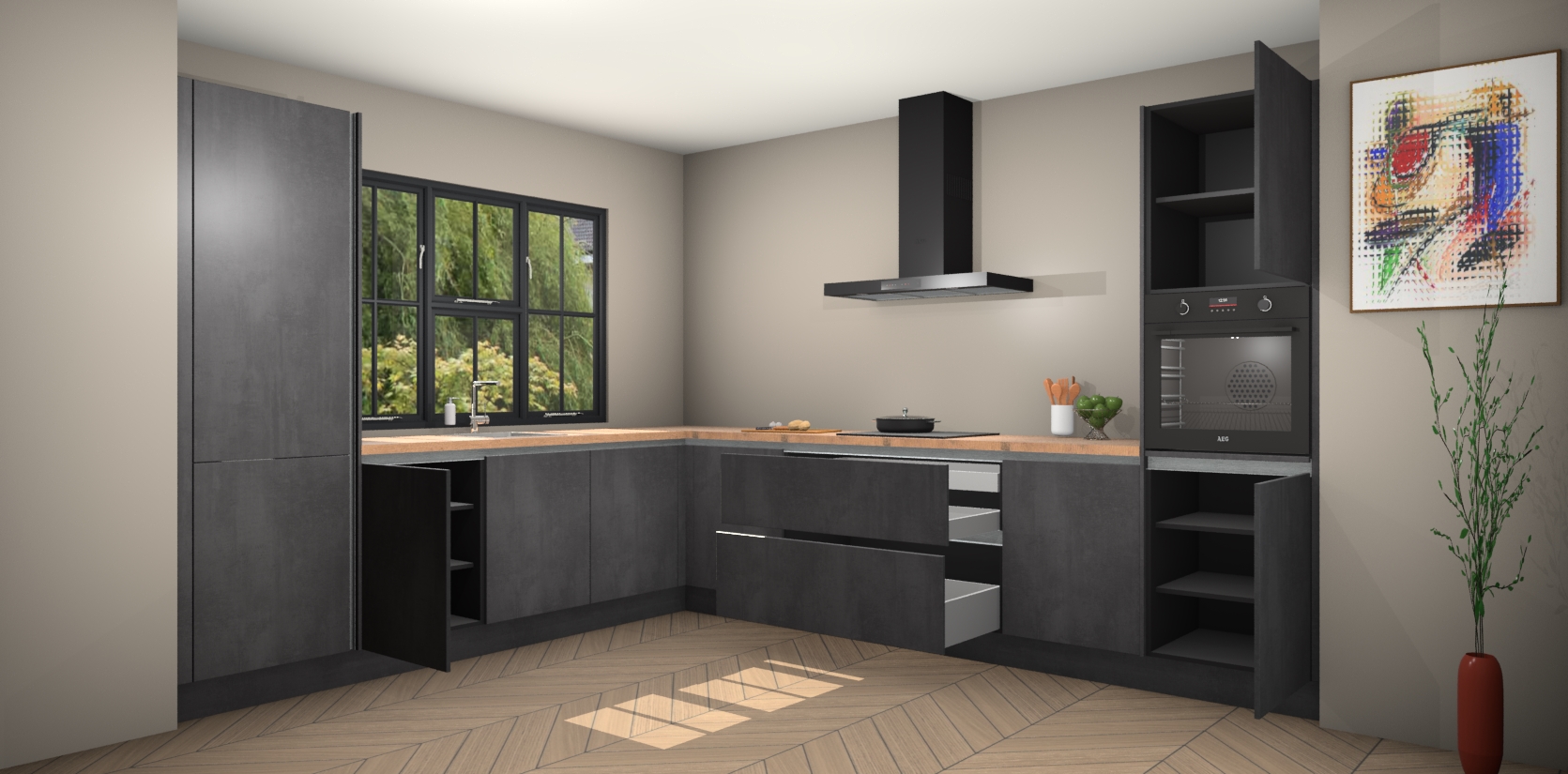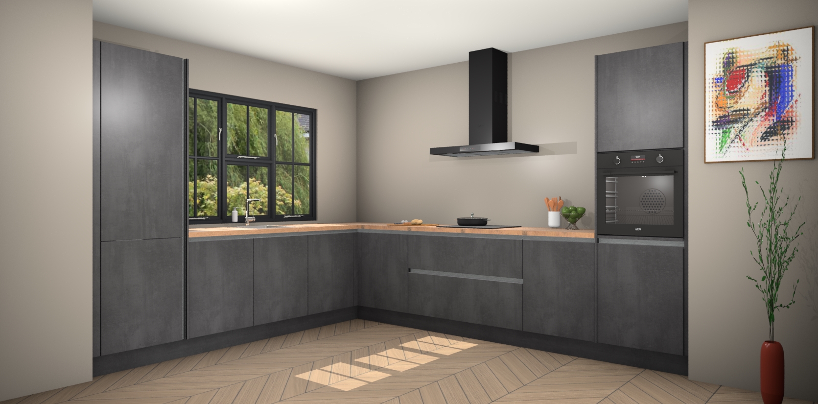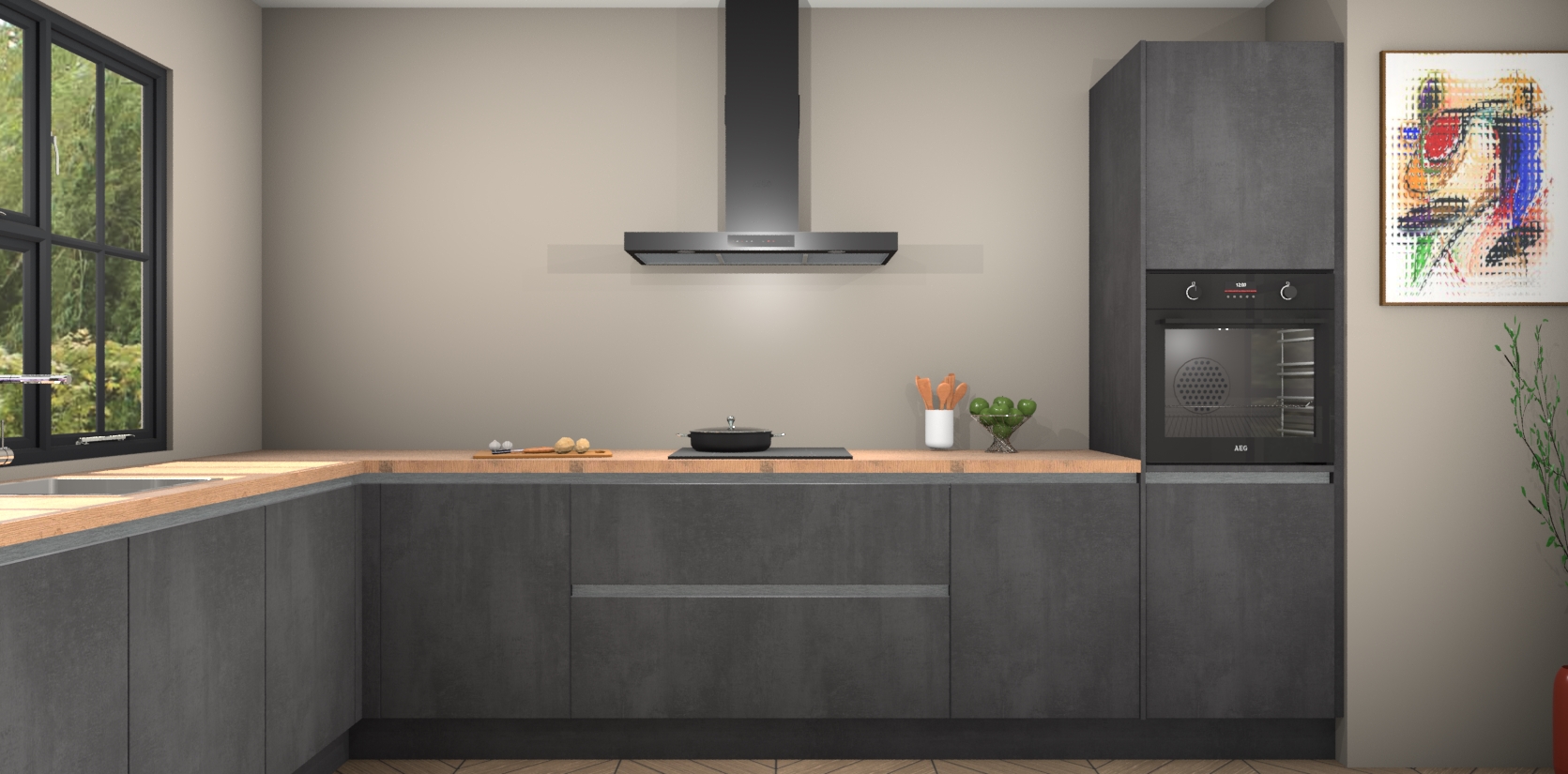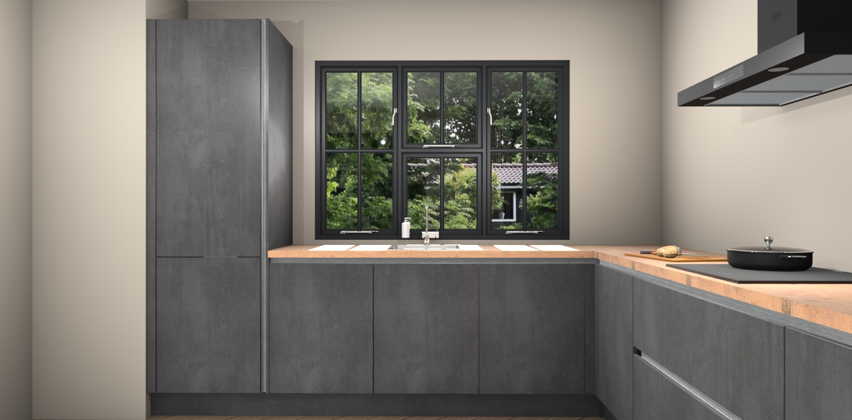 Voeg daar ons vaste lage prijskaartje aan toe en je hebt het perfecte pakket - dus waarom wachten? Haal uw beton zwarte greeploze keuken Tychy vandaag nog in huis voor een betaalbare manier om uw keuken zowel mooi als functioneel te maken.