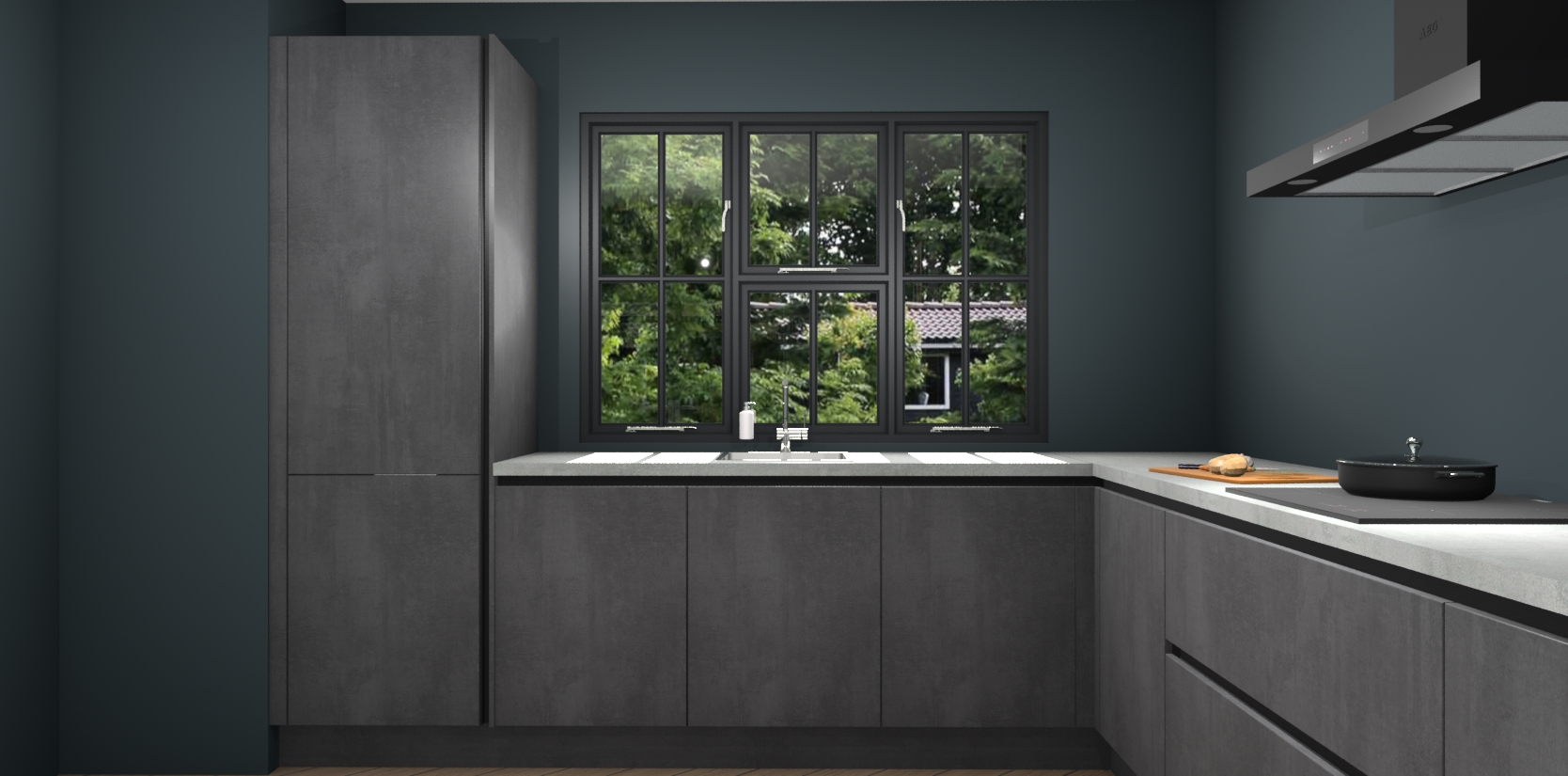 Voeg daar ons vaste lage prijskaartje aan toe en je hebt het perfecte pakket - dus waarom wachten? Haal uw beton zwarte greeploze keuken Tychy vandaag nog in huis voor een betaalbare manier om uw keuken zowel mooi als functioneel te maken.