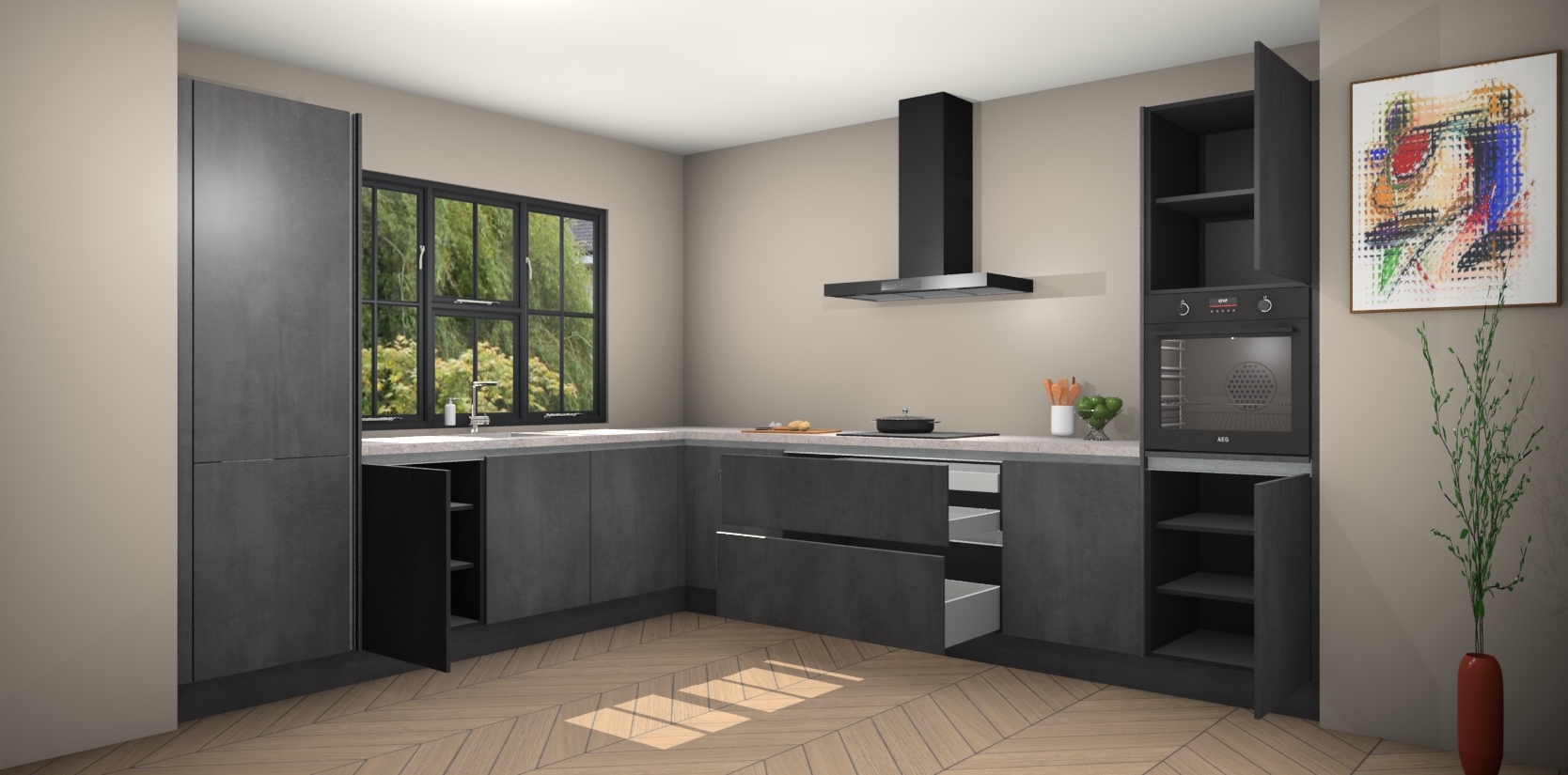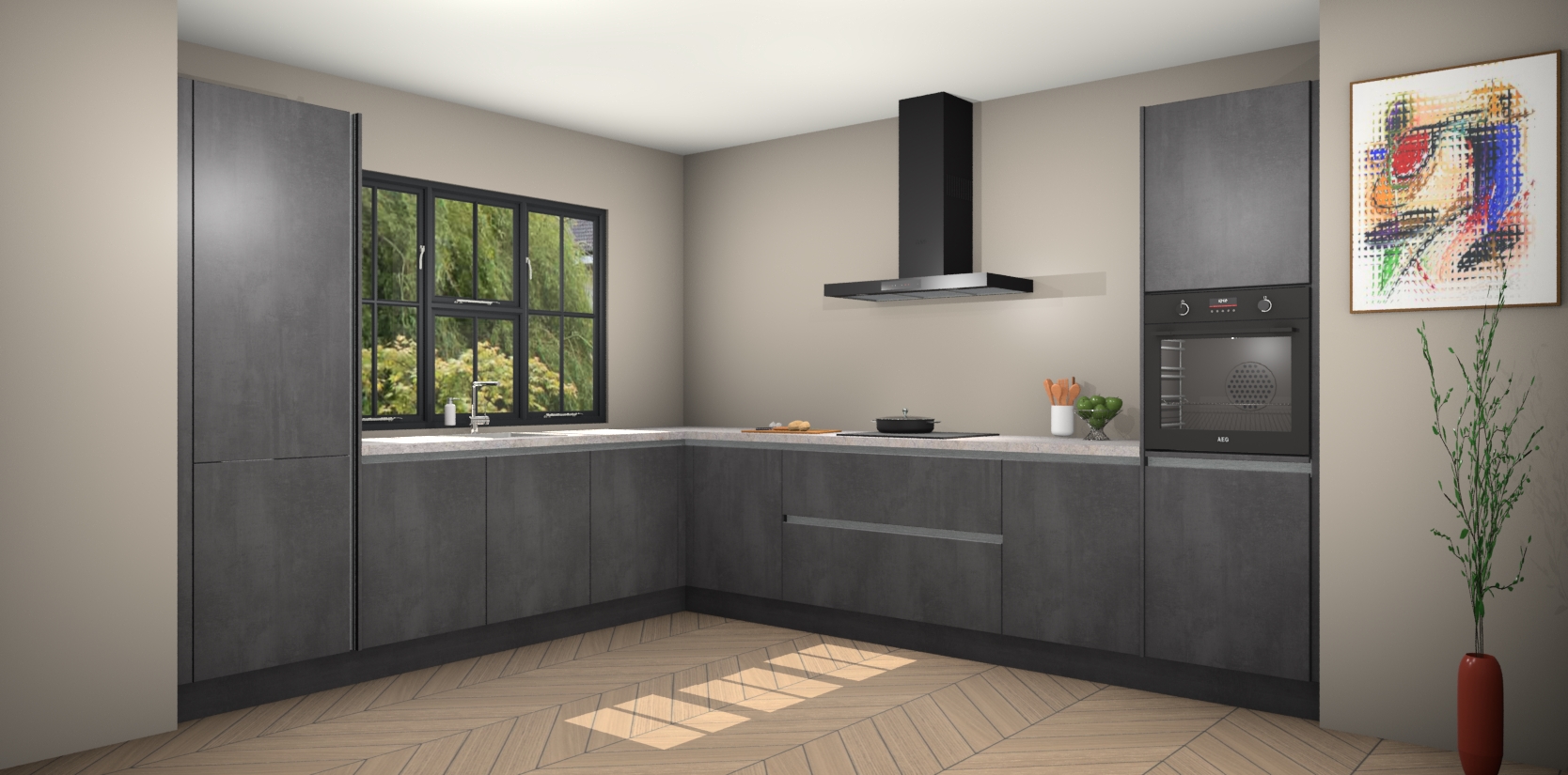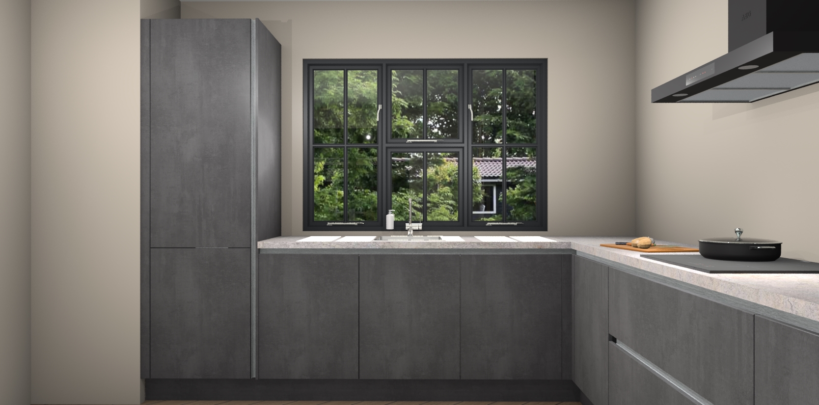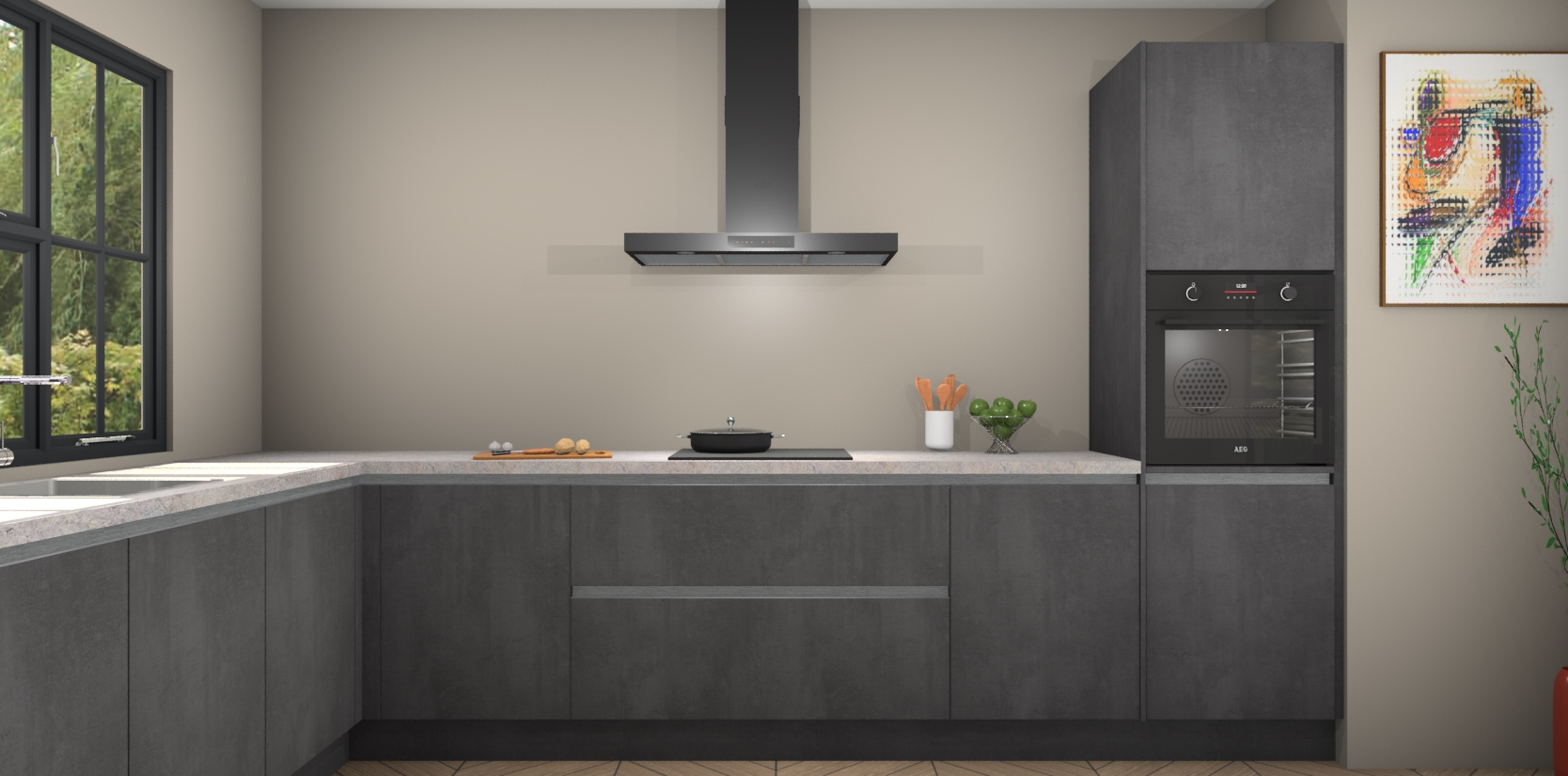 Voeg daar ons vaste lage prijskaartje aan toe en je hebt het perfecte pakket - dus waarom wachten? Haal uw beton zwarte greeploze keuken Tychy vandaag nog in huis voor een betaalbare manier om uw keuken zowel mooi als functioneel te maken.