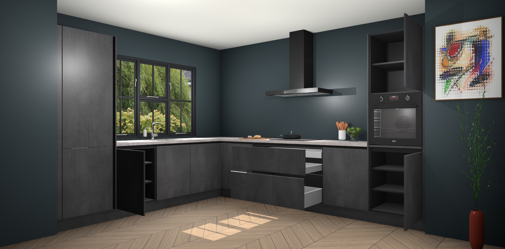 Voeg daar ons vaste lage prijskaartje aan toe en je hebt het perfecte pakket - dus waarom wachten? Haal uw beton zwarte greeploze keuken Tychy vandaag nog in huis voor een betaalbare manier om uw keuken zowel mooi als functioneel te maken.