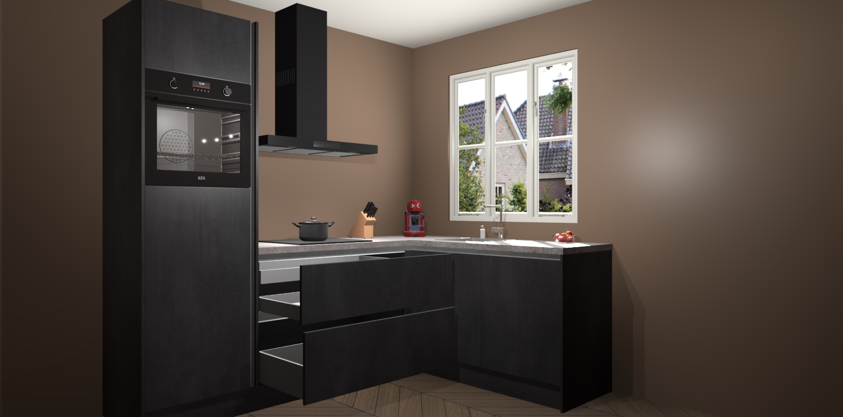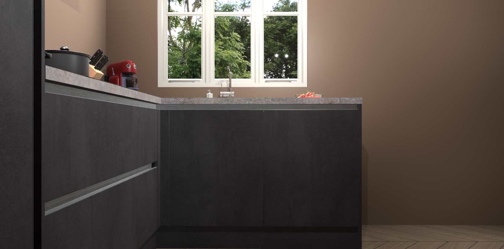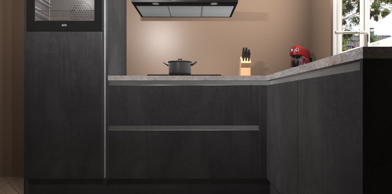 Bestellen was nog nooit zo makkelijk en we leveren met slechts 7 weken; zodra de keuken arriveert staan de kasten voor gemonteerd klaar om er alles aan te doen dat u hem gemakkelijk zelf kunt installeren! Eén ding is zeker: met de Beton Zwarte greeploze keuken Victoria slaagt u erin modischer, modernere keukens uit te rusten die tientallen jaren meegaan! Haal snel uw Beton Zwarte greeploze keuken Victoria - of u nu net begint of al 'levenservaring' hebt in de keukendroomloopbaan - want dit topmodel van onze collectie wilt u absoluut niet missen.