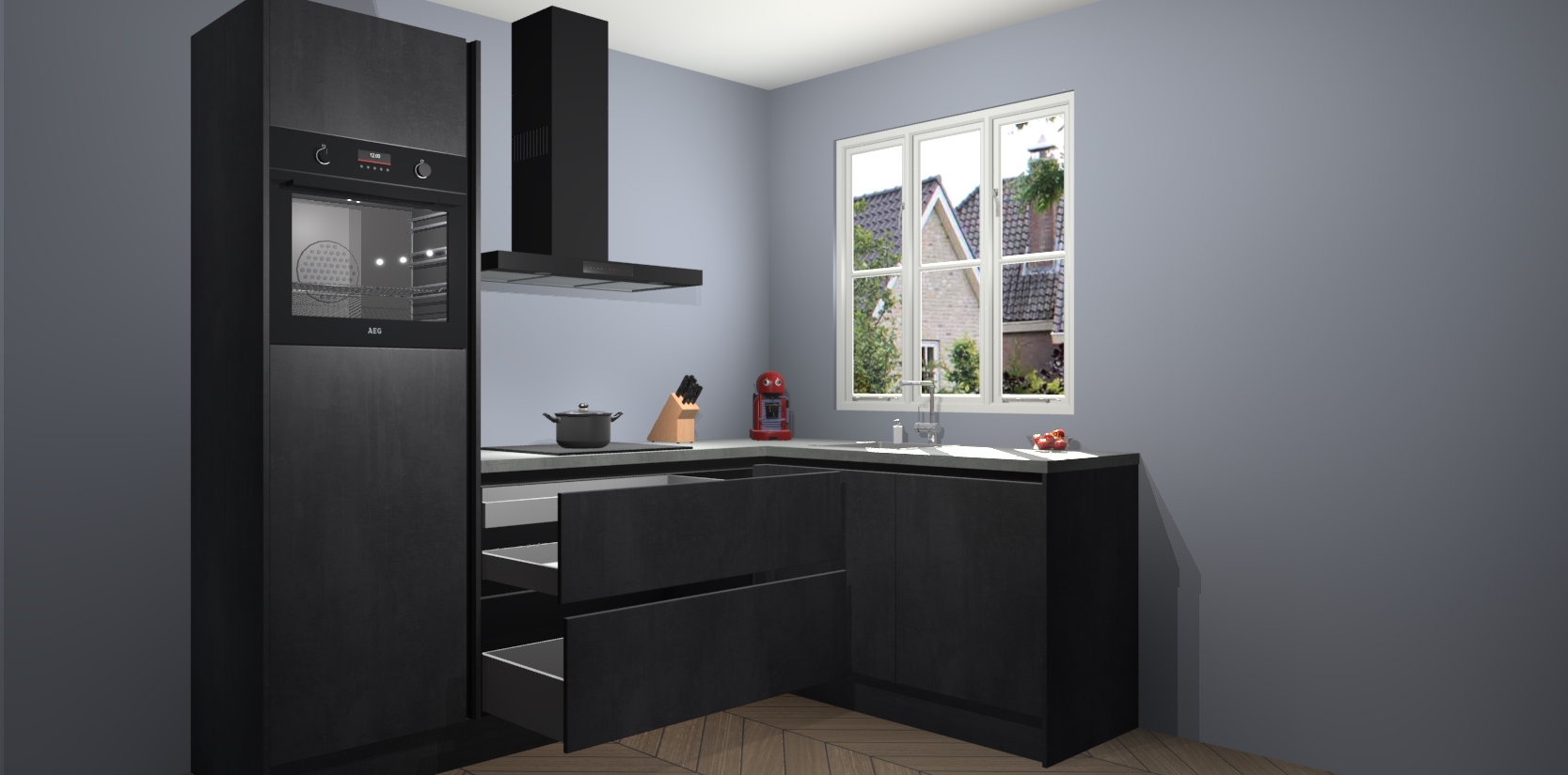 Bestellen was nog nooit zo makkelijk en we leveren met slechts 7 weken; zodra de keuken arriveert staan de kasten voor gemonteerd klaar om er alles aan te doen dat u hem gemakkelijk zelf kunt installeren! Eén ding is zeker: met de Beton Zwarte greeploze keuken Victoria slaagt u erin modischer, modernere keukens uit te rusten die tientallen jaren meegaan! Haal snel uw Beton Zwarte greeploze keuken Victoria - of u nu net begint of al 'levenservaring' hebt in de keukendroomloopbaan - want dit topmodel van onze collectie wilt u absoluut niet missen.