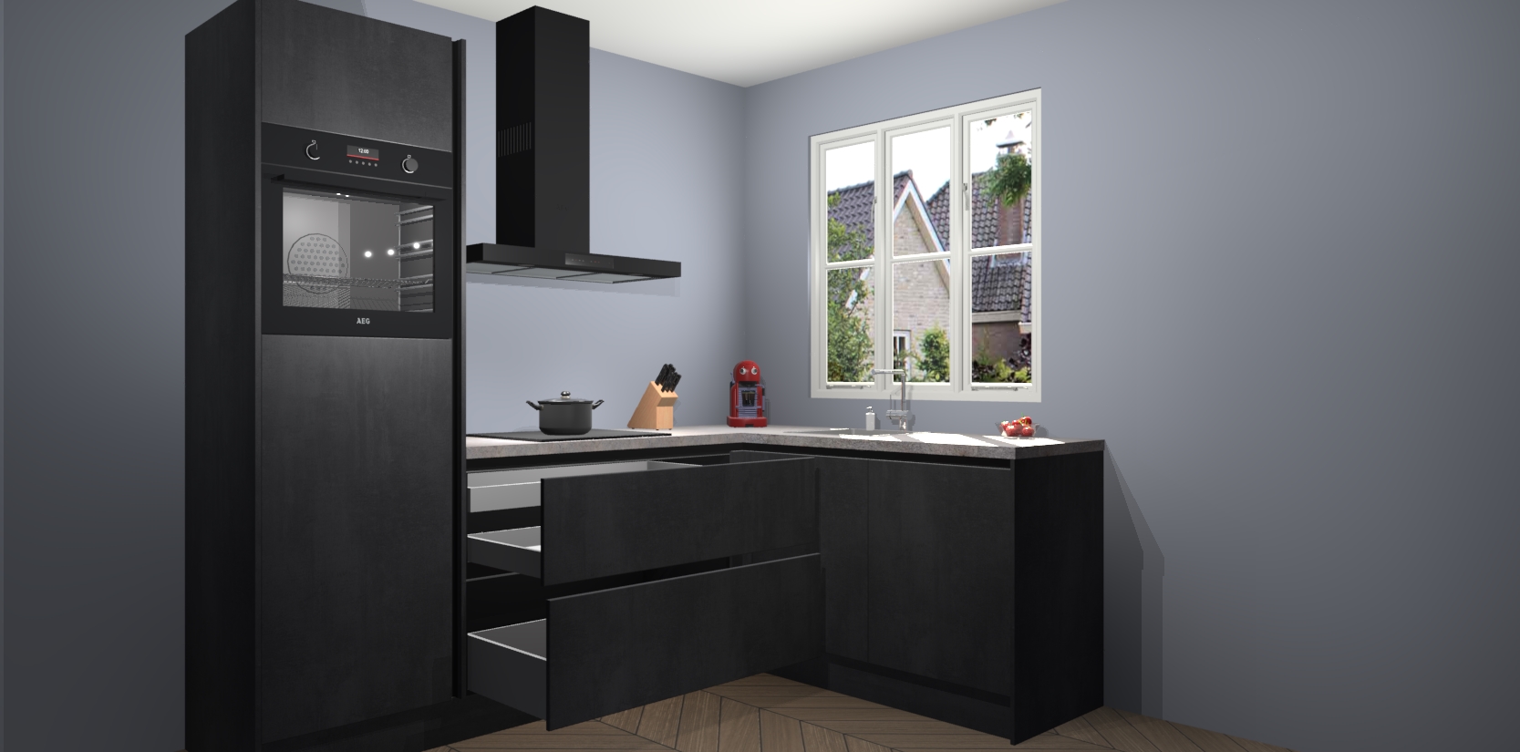 Bestellen was nog nooit zo makkelijk en we leveren met slechts 7 weken; zodra de keuken arriveert staan de kasten voor gemonteerd klaar om er alles aan te doen dat u hem gemakkelijk zelf kunt installeren! Eén ding is zeker: met de Beton Zwarte greeploze keuken Victoria slaagt u erin modischer, modernere keukens uit te rusten die tientallen jaren meegaan! Haal snel uw Beton Zwarte greeploze keuken Victoria - of u nu net begint of al 'levenservaring' hebt in de keukendroomloopbaan - want dit topmodel van onze collectie wilt u absoluut niet missen.