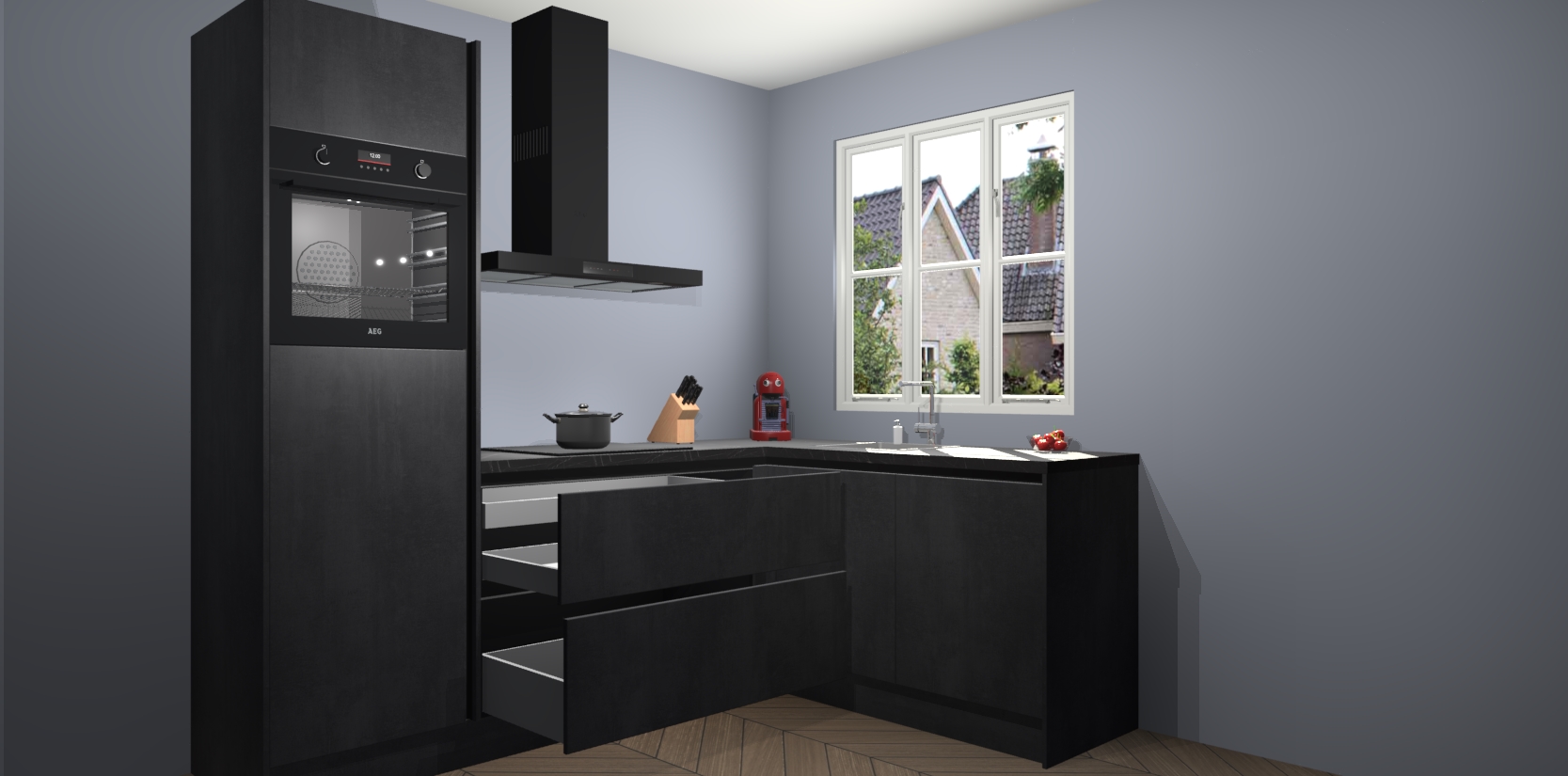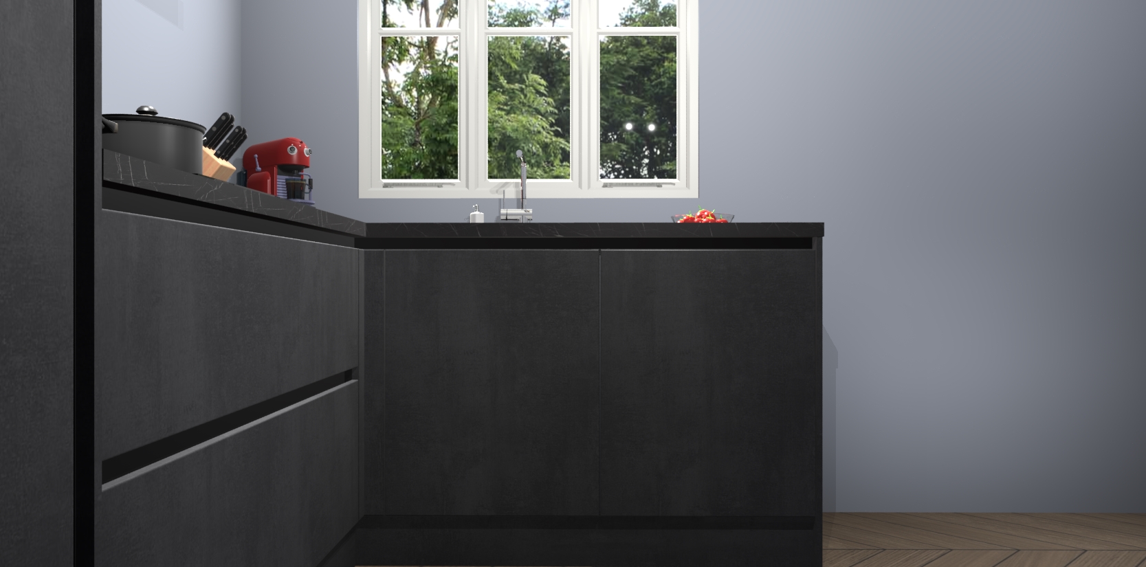 Bestellen was nog nooit zo makkelijk en we leveren met slechts 7 weken; zodra de keuken arriveert staan de kasten voor gemonteerd klaar om er alles aan te doen dat u hem gemakkelijk zelf kunt installeren! Eén ding is zeker: met de Beton Zwarte greeploze keuken Victoria slaagt u erin modischer, modernere keukens uit te rusten die tientallen jaren meegaan! Haal snel uw Beton Zwarte greeploze keuken Victoria - of u nu net begint of al 'levenservaring' hebt in de keukendroomloopbaan - want dit topmodel van onze collectie wilt u absoluut niet missen.