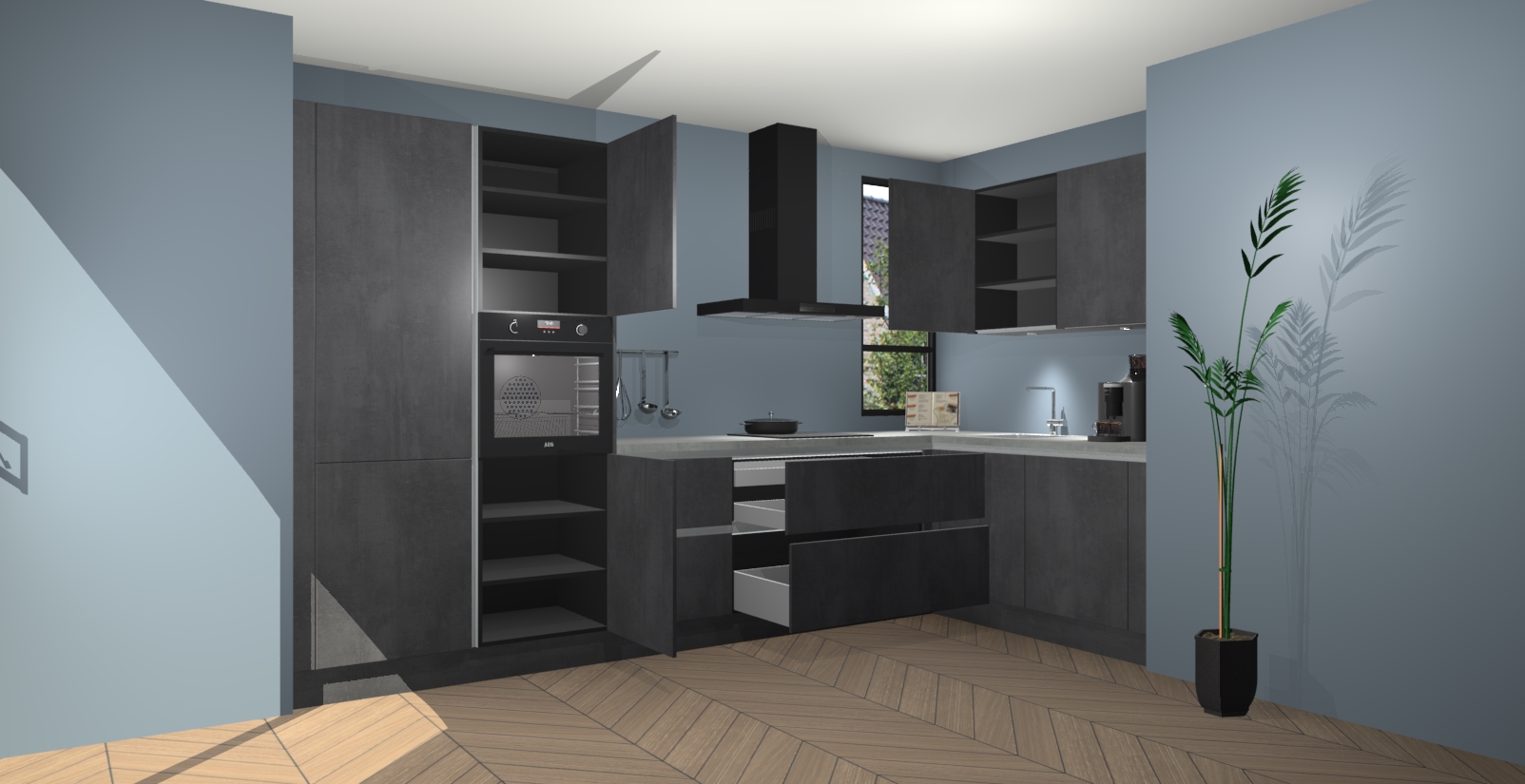 Welkom in uw nieuwe moderne keuken! Laat ons u voorstellen aan de Beton Zwarte greeploze keuken Vlaanderen . Deze prachtige hoekkeuken straalt exclusiviteit en luxe uit als geen ander. Het strakke design, de tijdloze kleuren en het greeploze model maken van deze keuken een moderne klassieker. En met voldoende opbergruimte heeft deze keuken echt voor ieder wat wils.