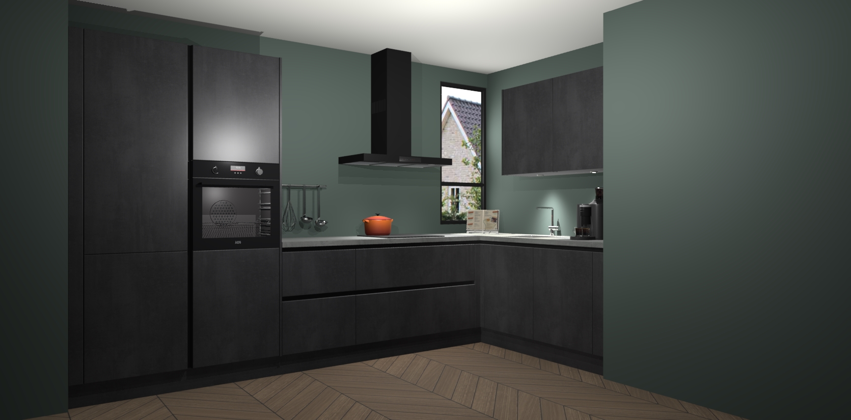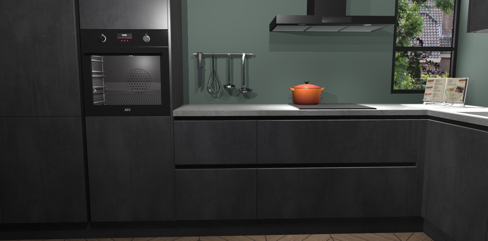 Welkom in uw nieuwe moderne keuken! Laat ons u voorstellen aan de Beton Zwarte greeploze keuken Vlaanderen.Deze prachtige hoekkeuken straalt exclusiviteit en luxe uit als geen ander. Het strakke design, de tijdloze kleuren en het greeploze model maken van deze keuken een moderne klassieker. En met voldoende opbergruimte heeft deze keuken echt voor ieder wat wils.