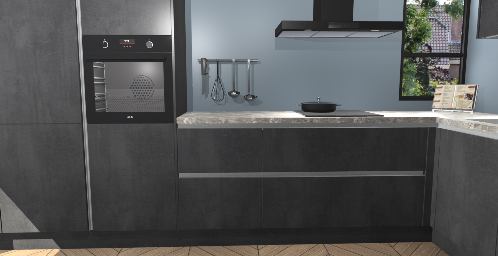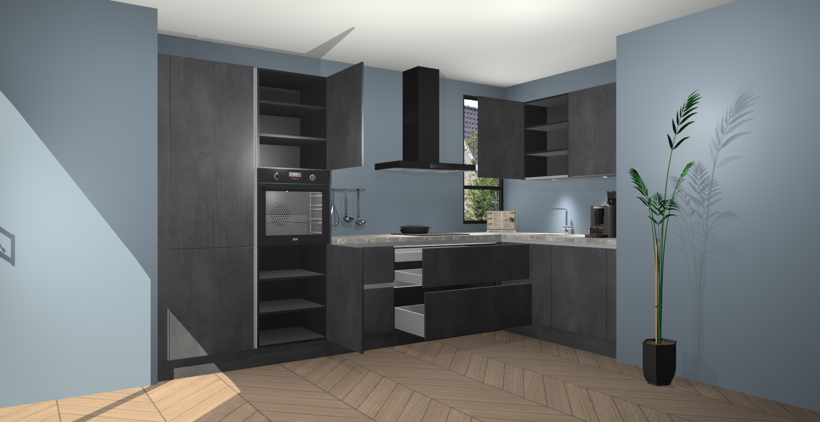 Welkom in uw nieuwe moderne keuken! Laat ons u voorstellen aan de Beton Zwarte greeploze keuken Vlaanderen . Deze prachtige hoekkeuken straalt exclusiviteit en luxe uit als geen ander. Het strakke design, de tijdloze kleuren en het greeploze model maken van deze keuken een moderne klassieker. En met voldoende opbergruimte heeft deze keuken echt voor ieder wat wils.