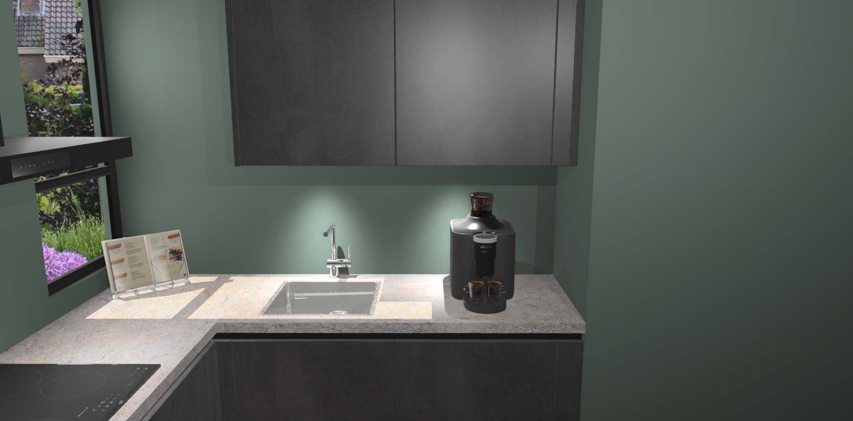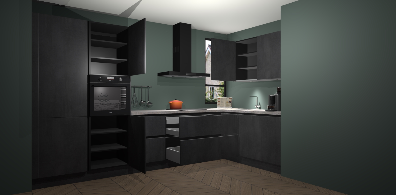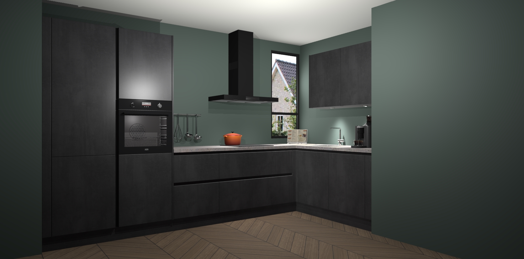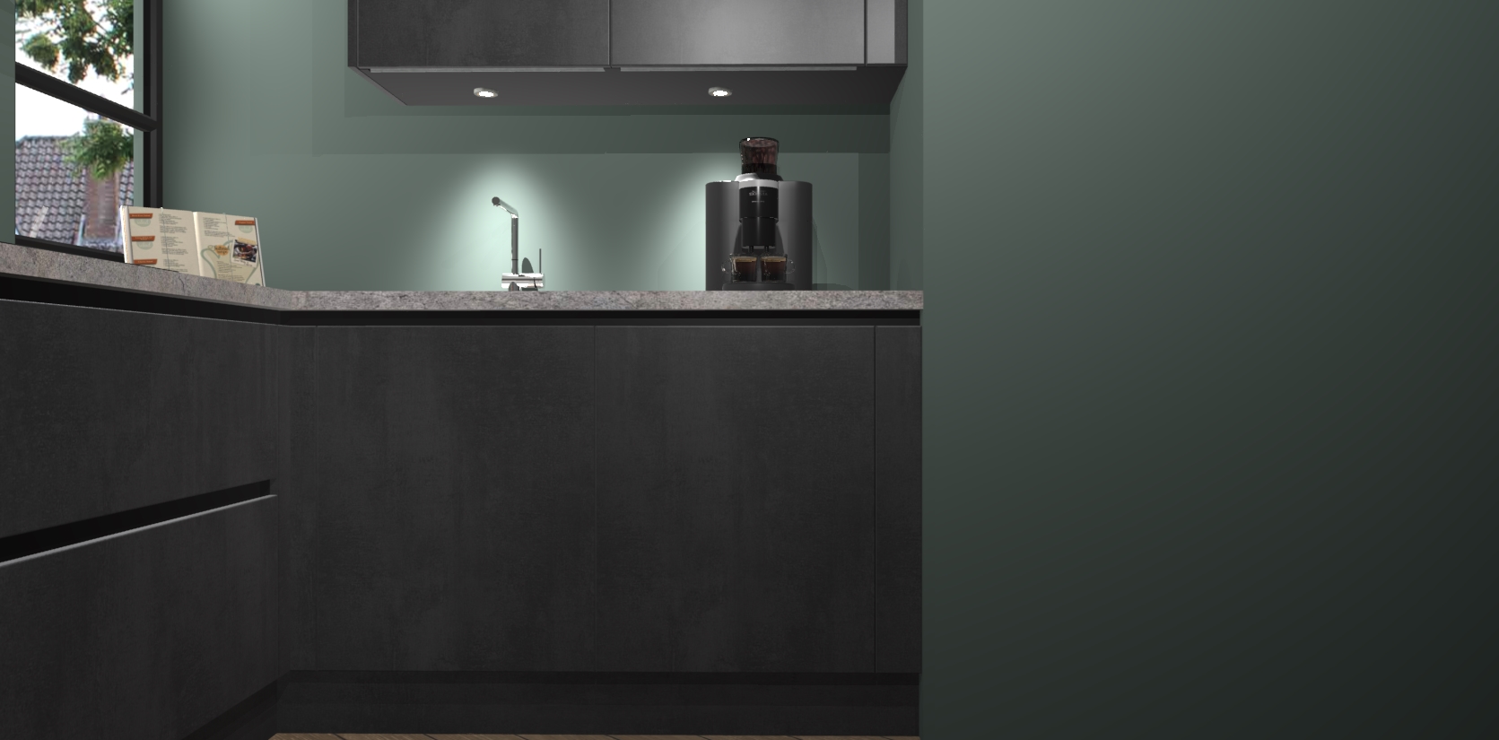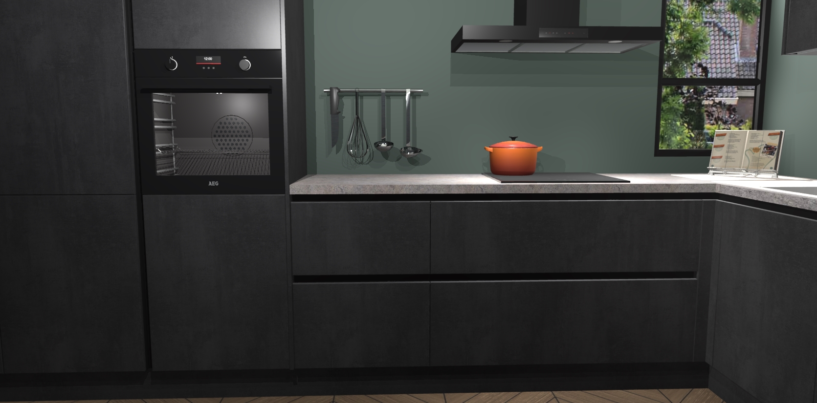 Welkom in uw nieuwe moderne keuken! Laat ons u voorstellen aan de Beton Zwarte greeploze keuken Vlaanderen.Deze prachtige hoekkeuken straalt exclusiviteit en luxe uit als geen ander. Het strakke design, de tijdloze kleuren en het greeploze model maken van deze keuken een moderne klassieker. En met voldoende opbergruimte heeft deze keuken echt voor ieder wat wils.