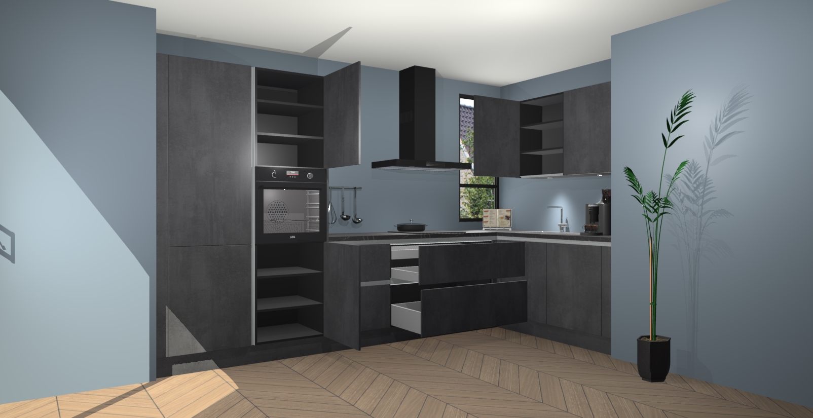 Welkom in uw nieuwe moderne keuken! Laat ons u voorstellen aan de Beton Zwarte greeploze keuken Vlaanderen . Deze prachtige hoekkeuken straalt exclusiviteit en luxe uit als geen ander. Het strakke design, de tijdloze kleuren en het greeploze model maken van deze keuken een moderne klassieker. En met voldoende opbergruimte heeft deze keuken echt voor ieder wat wils.