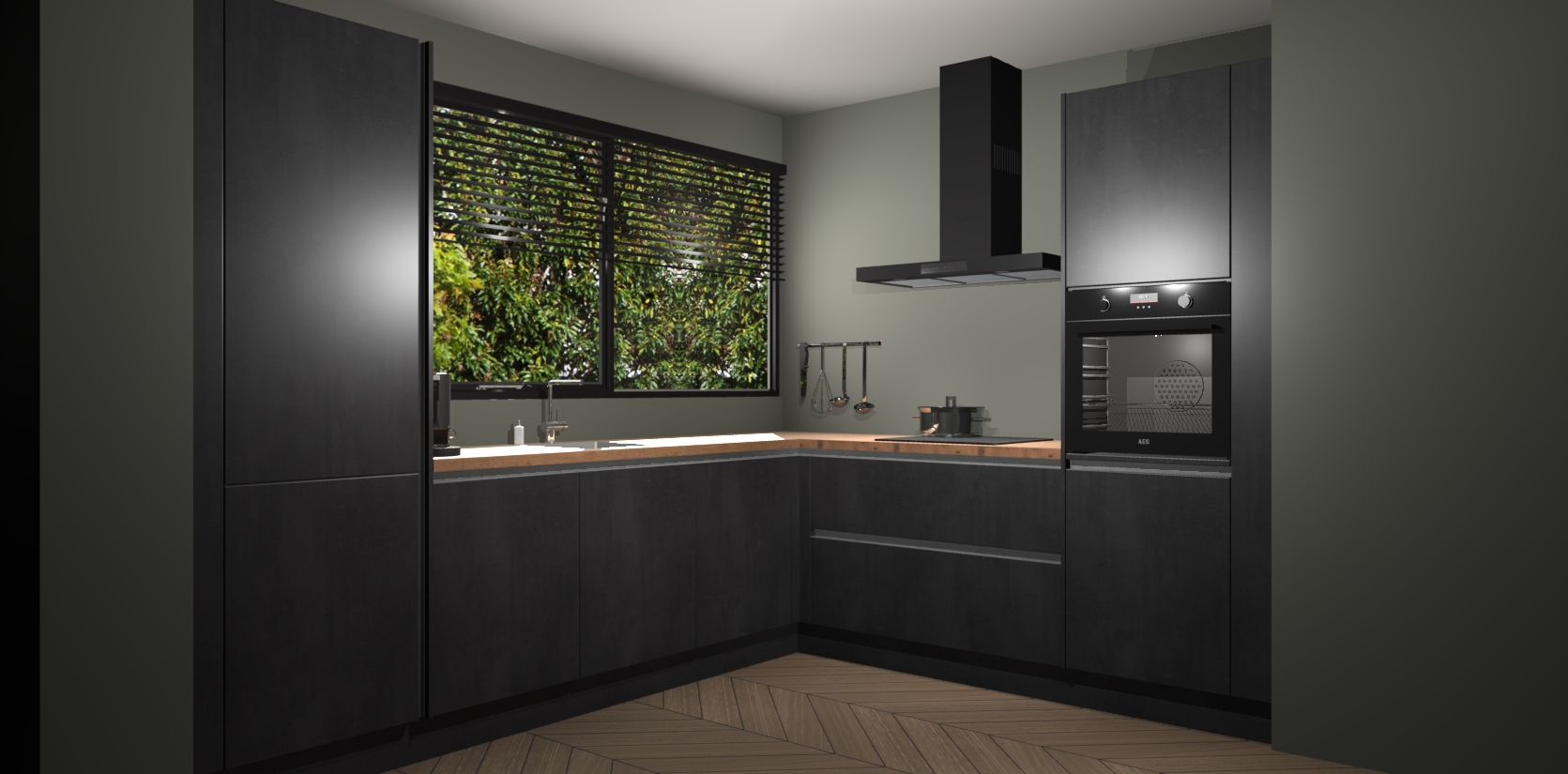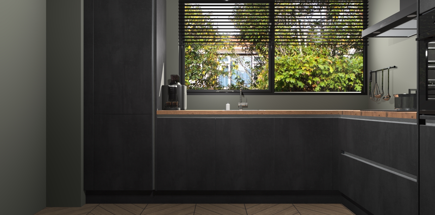 Wij presenteren de revolutie in keukens: de beton zwarte greeploze keuken Vogar. Met modern design, een tijdloos uiterlijk en kasten die al voor gemonteerd worden geleverd, laat deze stijlvolle keuken uw kookervaring op een hele nieuwe manier transformeren.