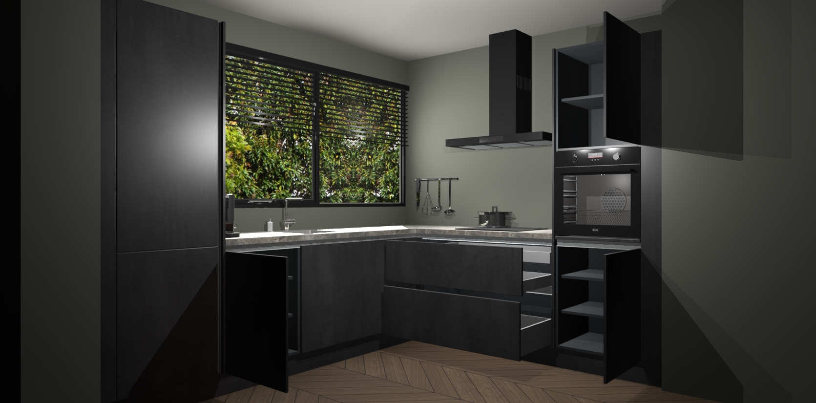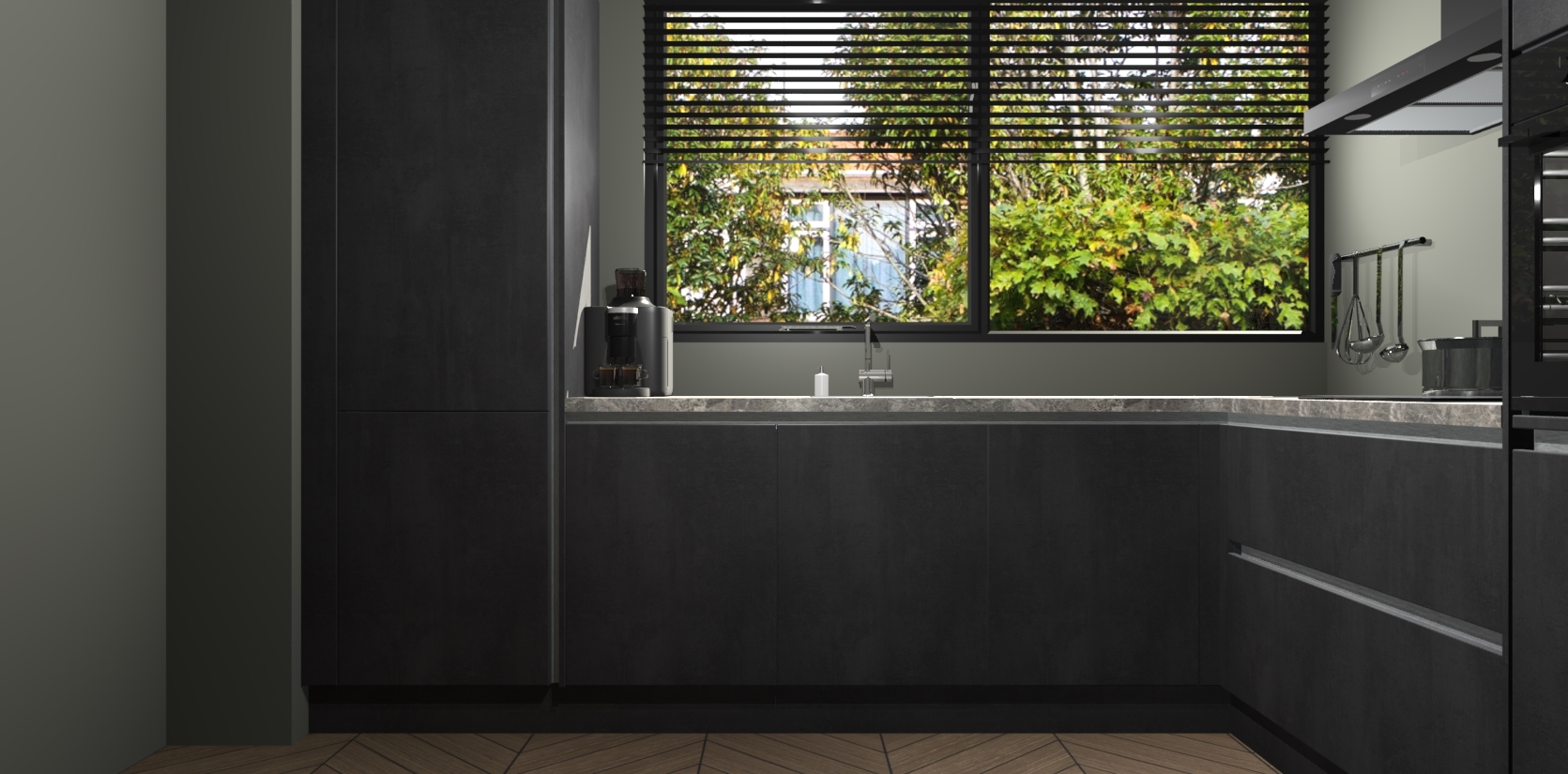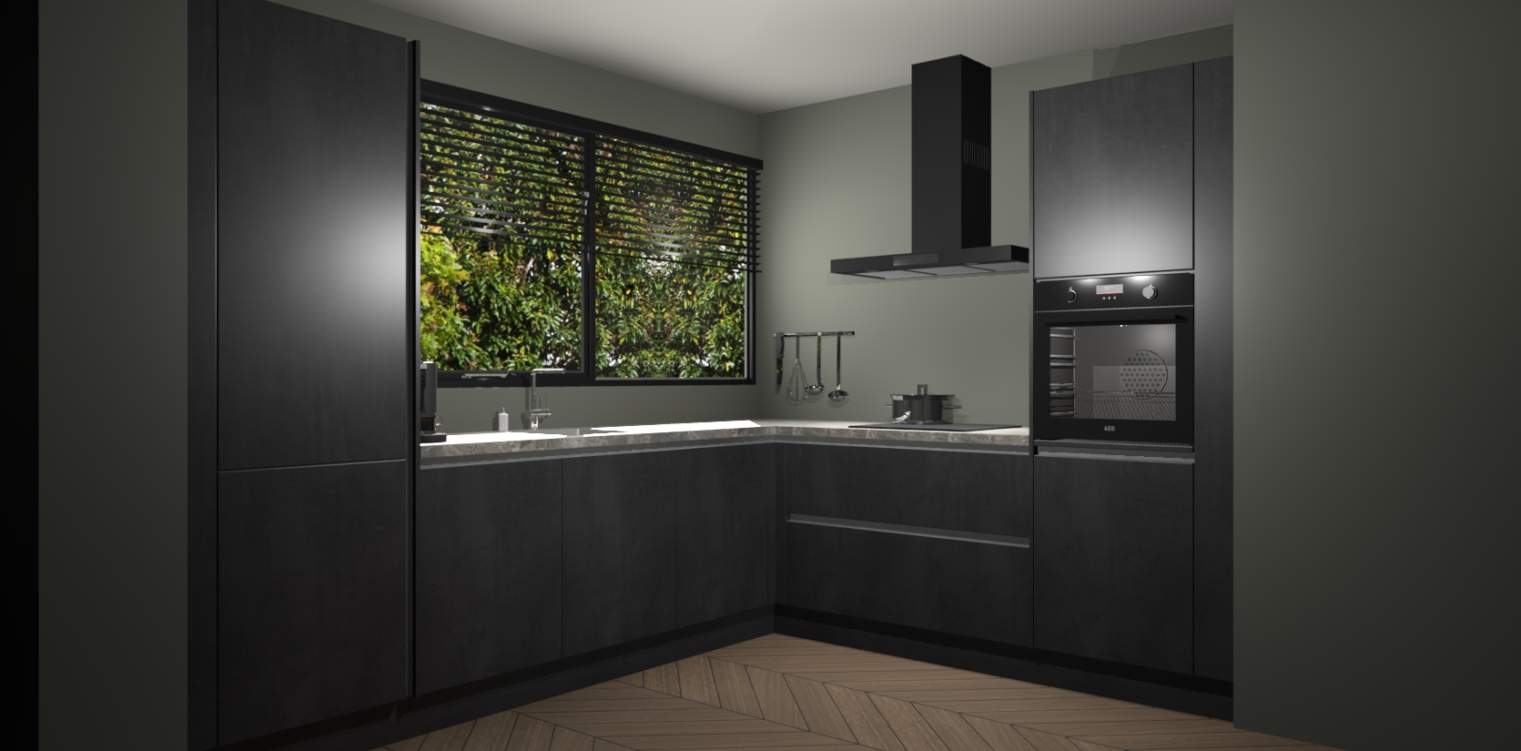 Wij presenteren de revolutie in keukens: de beton zwarte greeploze keuken Vogar. Met modern design, een tijdloos uiterlijk en kasten die al voor gemonteerd worden geleverd, laat deze stijlvolle keuken uw kookervaring op een hele nieuwe manier transformeren.