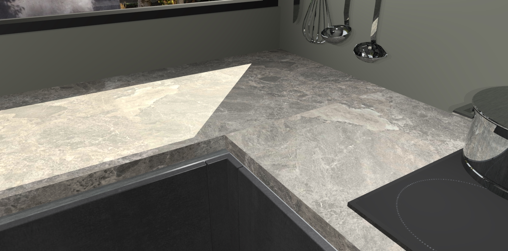 - Bij een hoekwerkblad zijn de hoeken in gevreesd en op maat gemaakt