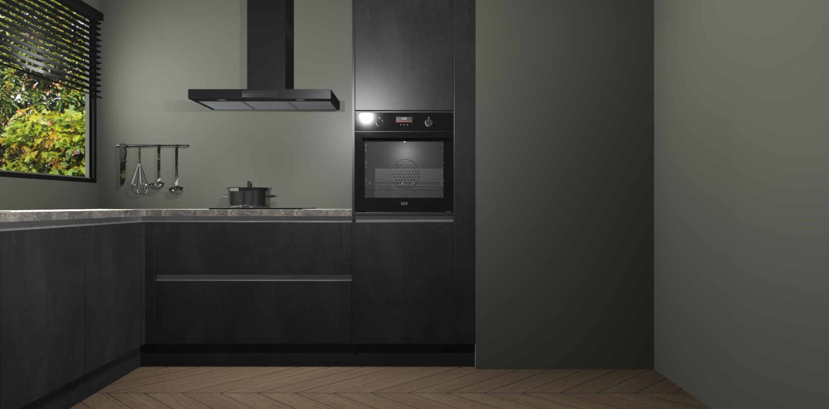 Met een modern, tijdloos design en ruime opslagruimte, zult u zich in no-time thuis voelen in uw nieuwe keuken. Uw leven wordt eenvoudiger met de soft-close deuren die voor het ultieme stille comfort zorgen - geen geluid dat u stoort terwijl u kookt. Ook is de keuken voorzien van 5 ingebouwde apparaten: een oven, inductie kookplaat, afzuigkap, vaatwasser en koelkast. Deze kunnen gemakkelijk na bestelling worden bijgewerkt naar AEG - waardoor uw luxe ervaring compleet is.