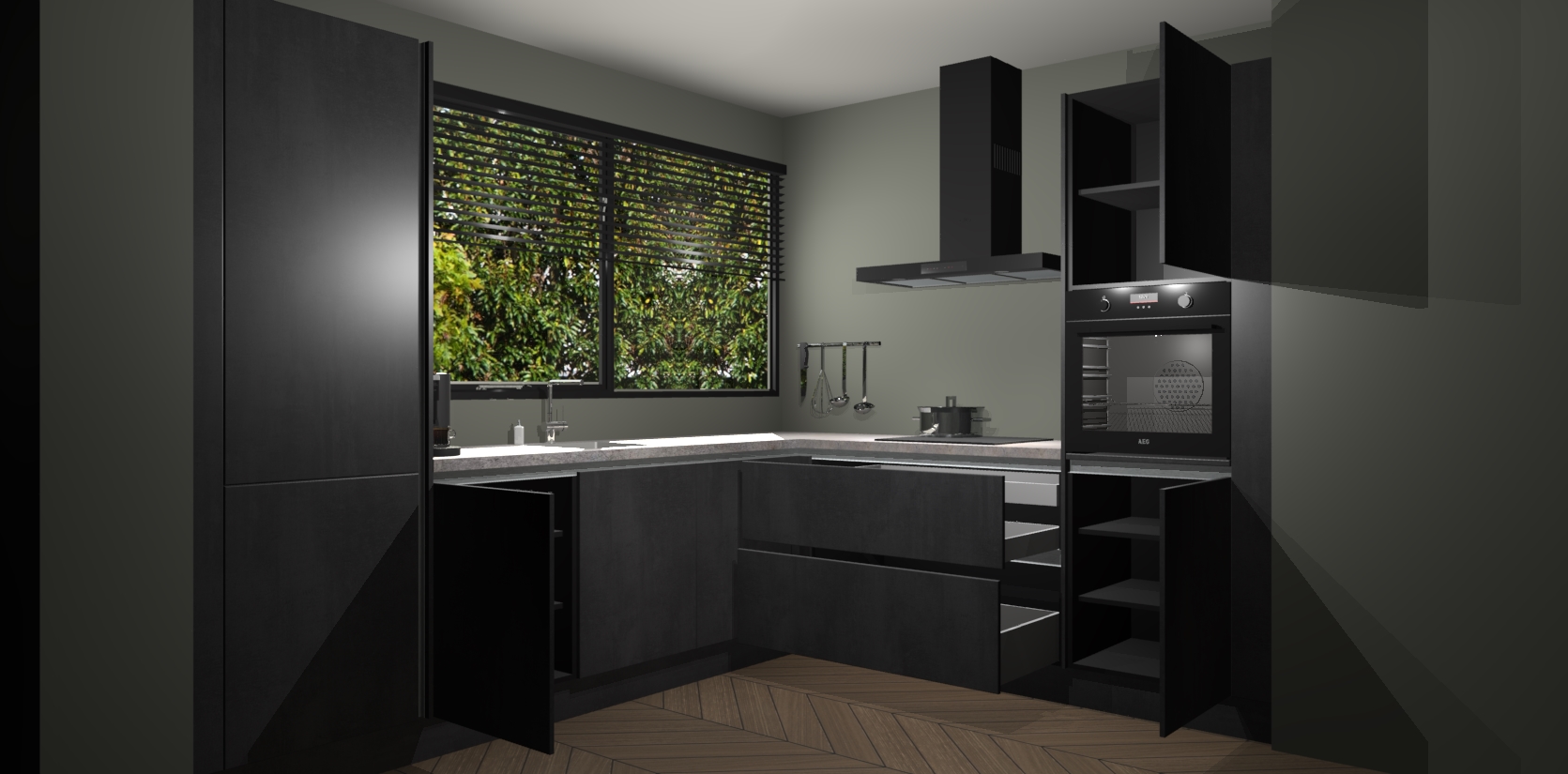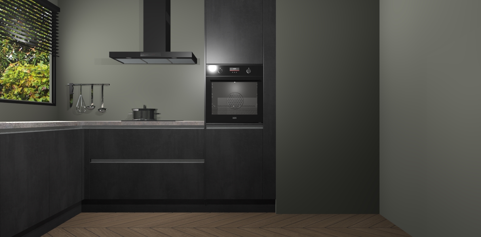 Met een modern, tijdloos design en ruime opslagruimte, zult u zich in no-time thuis voelen in uw nieuwe keuken. Uw leven wordt eenvoudiger met de soft-close deuren die voor het ultieme stille comfort zorgen - geen geluid dat u stoort terwijl u kookt. Ook is de keuken voorzien van 5 ingebouwde apparaten: een oven, inductie kookplaat, afzuigkap, vaatwasser en koelkast. Deze kunnen gemakkelijk na bestelling worden bijgewerkt naar AEG - waardoor uw luxe ervaring compleet is.