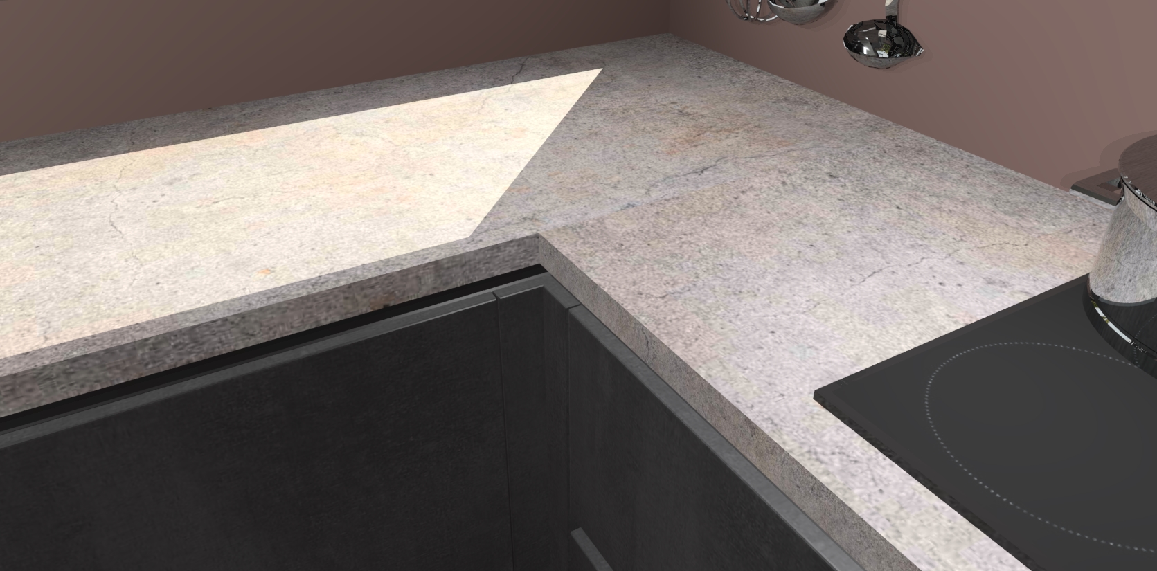 - Bij een hoekwerkblad zijn de hoeken in gevreesd en op maat gemaakt