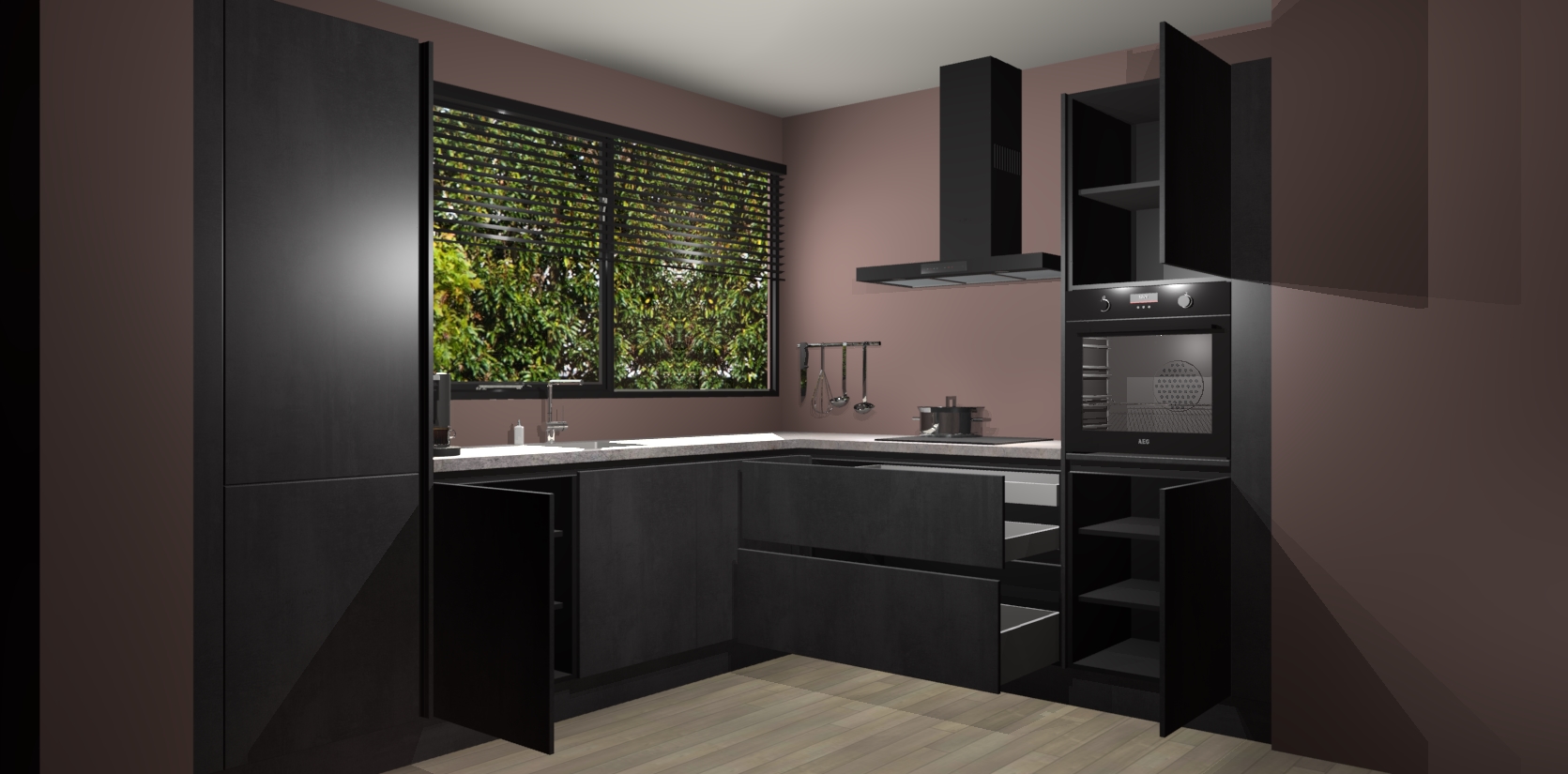 Wij presenteren de revolutie in keukens: de beton zwarte greeploze keuken Vogar. Met modern design, een tijdloos uiterlijk en kasten die al voor gemonteerd worden geleverd, laat deze stijlvolle keuken uw kookervaring op een hele nieuwe manier transformeren.