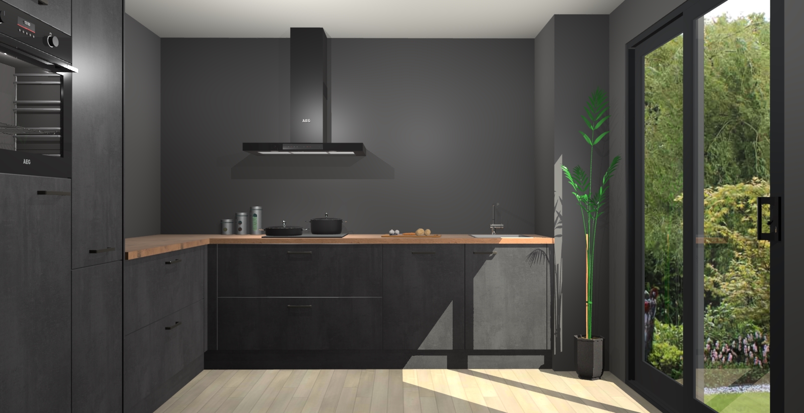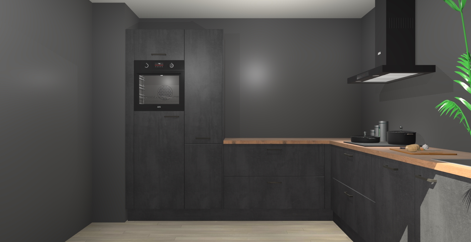 Laat u verrassen door de nieuwste en meest innovatieve keuken van dit moment: De Beton Zwarte keuken Antibes. Deze chique keuken straalt een stijlvolle sfeer uit die zeker bewondering zal oogsten bij uw gasten. Als u op zoek bent naar voldoende opbergruimte voor al uw keukengadgets en -gerei, dan is dit de perfecte oplossing. Met ingebouwde apparatuur zoals een oven, inductiekookplaat, afzuigkap, vaatwasser en koelkast! U krijgt niet alleen veel opbergruimte, maar ook een betrouwbaar soft close-deursysteem dat ervoor zorgt dat er nooit meer kastdeuren dichtslaan!