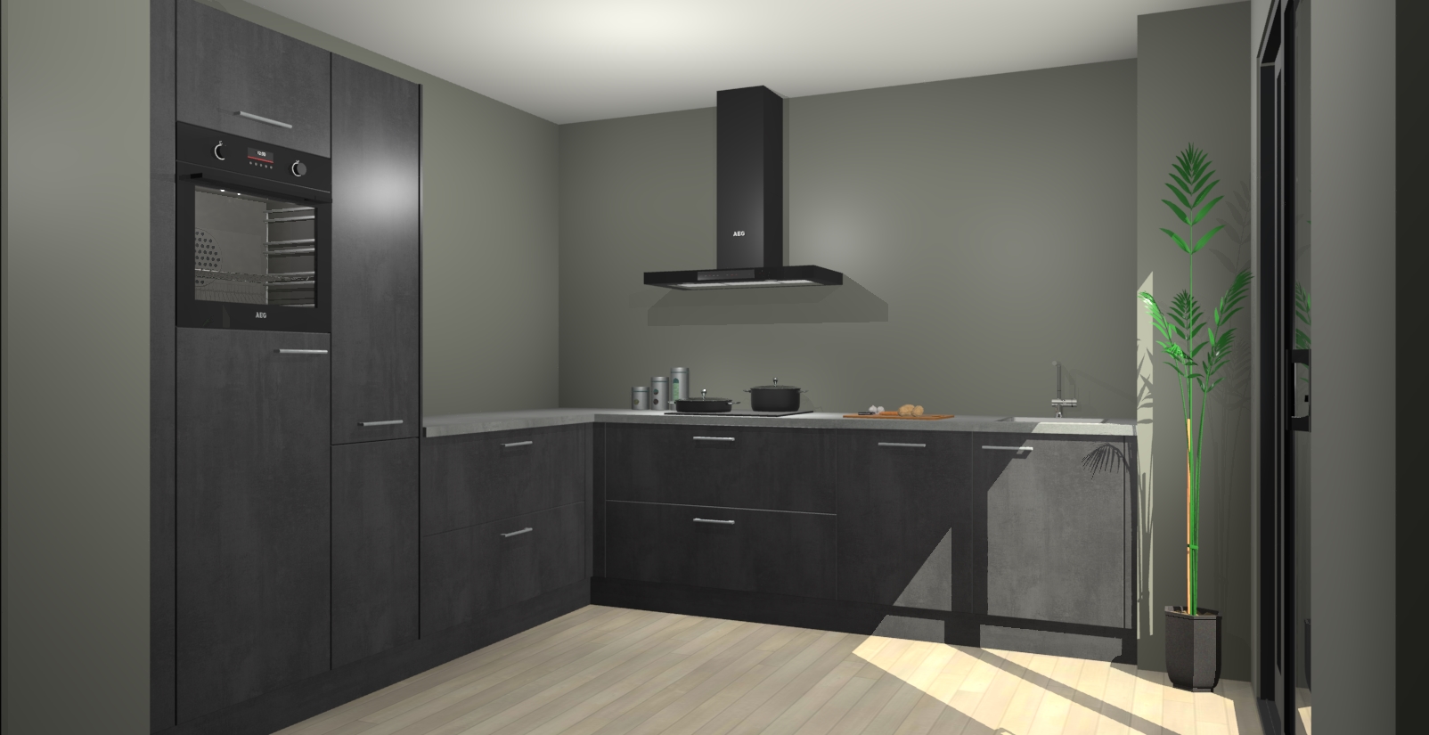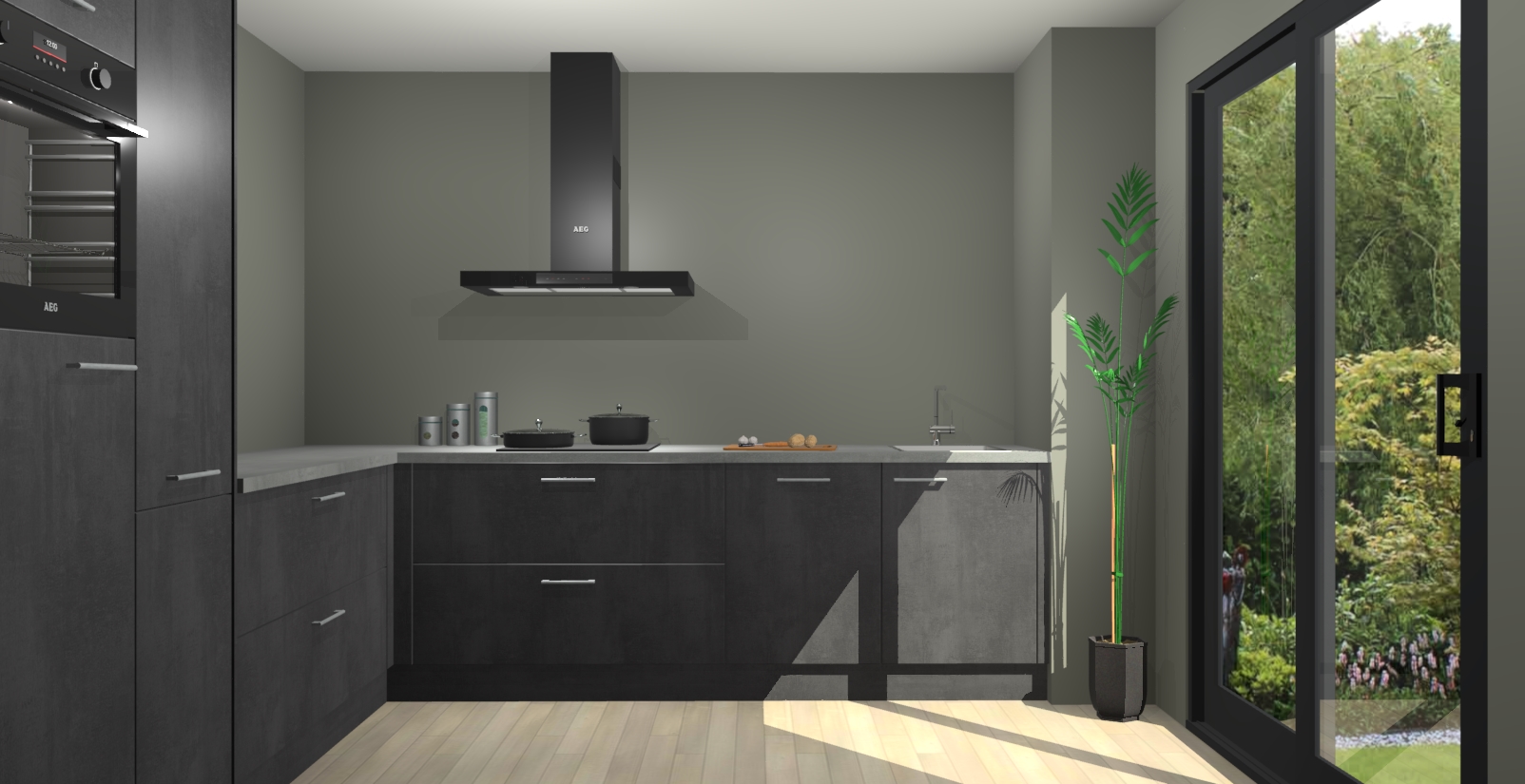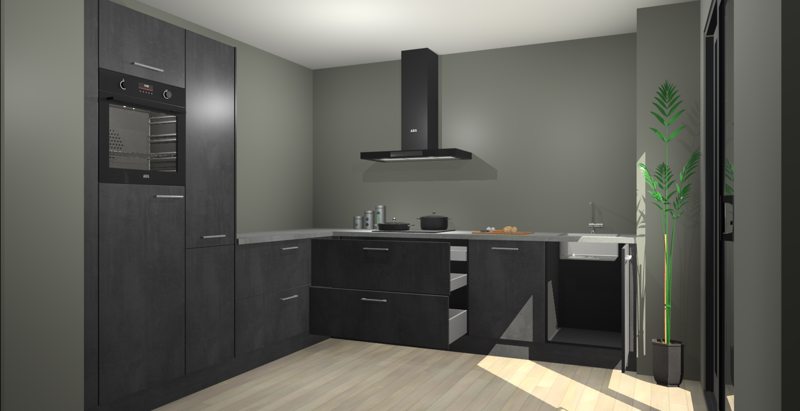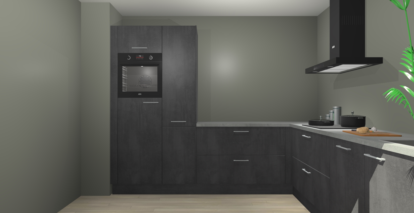 Laat u verrassen door de nieuwste en meest innovatieve keuken van dit moment: De Beton Zwarte keuken Antibes. Deze chique keuken straalt een stijlvolle sfeer uit die zeker bewondering zal oogsten bij uw gasten. Als u op zoek bent naar voldoende opbergruimte voor al uw keukengadgets en -gerei, dan is dit de perfecte oplossing. Met ingebouwde apparatuur zoals een oven, inductiekookplaat, afzuigkap, vaatwasser en koelkast! U krijgt niet alleen veel opbergruimte, maar ook een betrouwbaar soft close-deursysteem dat ervoor zorgt dat er nooit meer kastdeuren dichtslaan!