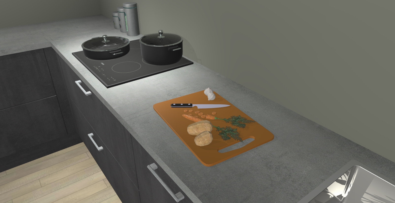 Inclusief plinten, stelpoten en werkblad