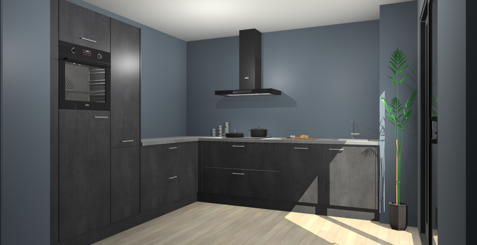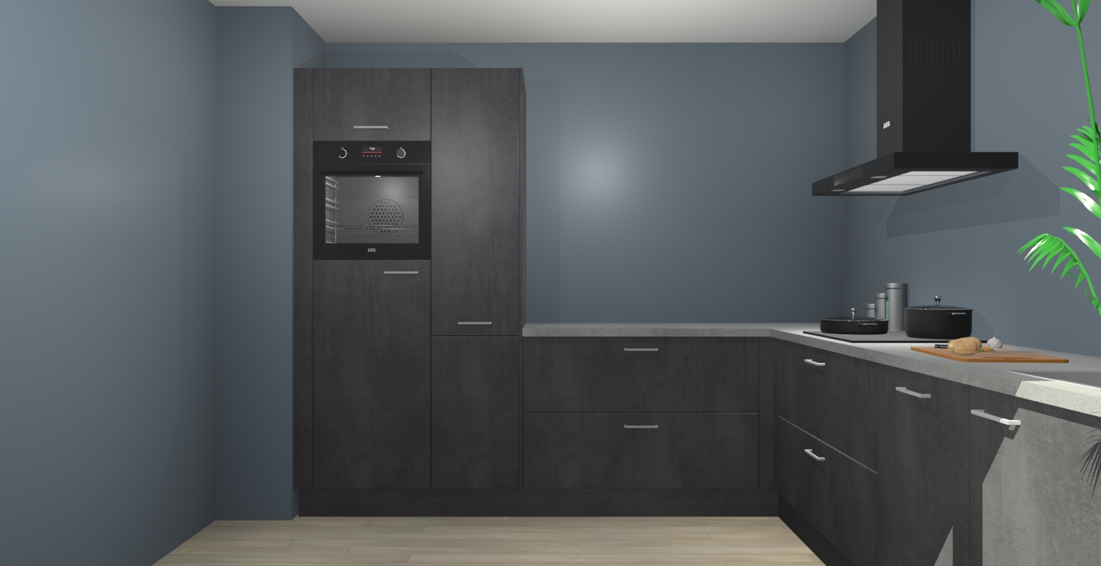 Laat u verrassen door de nieuwste en meest innovatieve keuken van dit moment: De Beton Zwarte keuken Antibes. Deze chique keuken straalt een stijlvolle sfeer uit die zeker bewondering zal oogsten bij uw gasten. Als u op zoek bent naar voldoende opbergruimte voor al uw keukengadgets en -gerei, dan is dit de perfecte oplossing. Met ingebouwde apparatuur zoals een oven, inductiekookplaat, afzuigkap, vaatwasser en koelkast! U krijgt niet alleen veel opbergruimte, maar ook een betrouwbaar soft close-deursysteem dat ervoor zorgt dat er nooit meer kastdeuren dichtslaan!