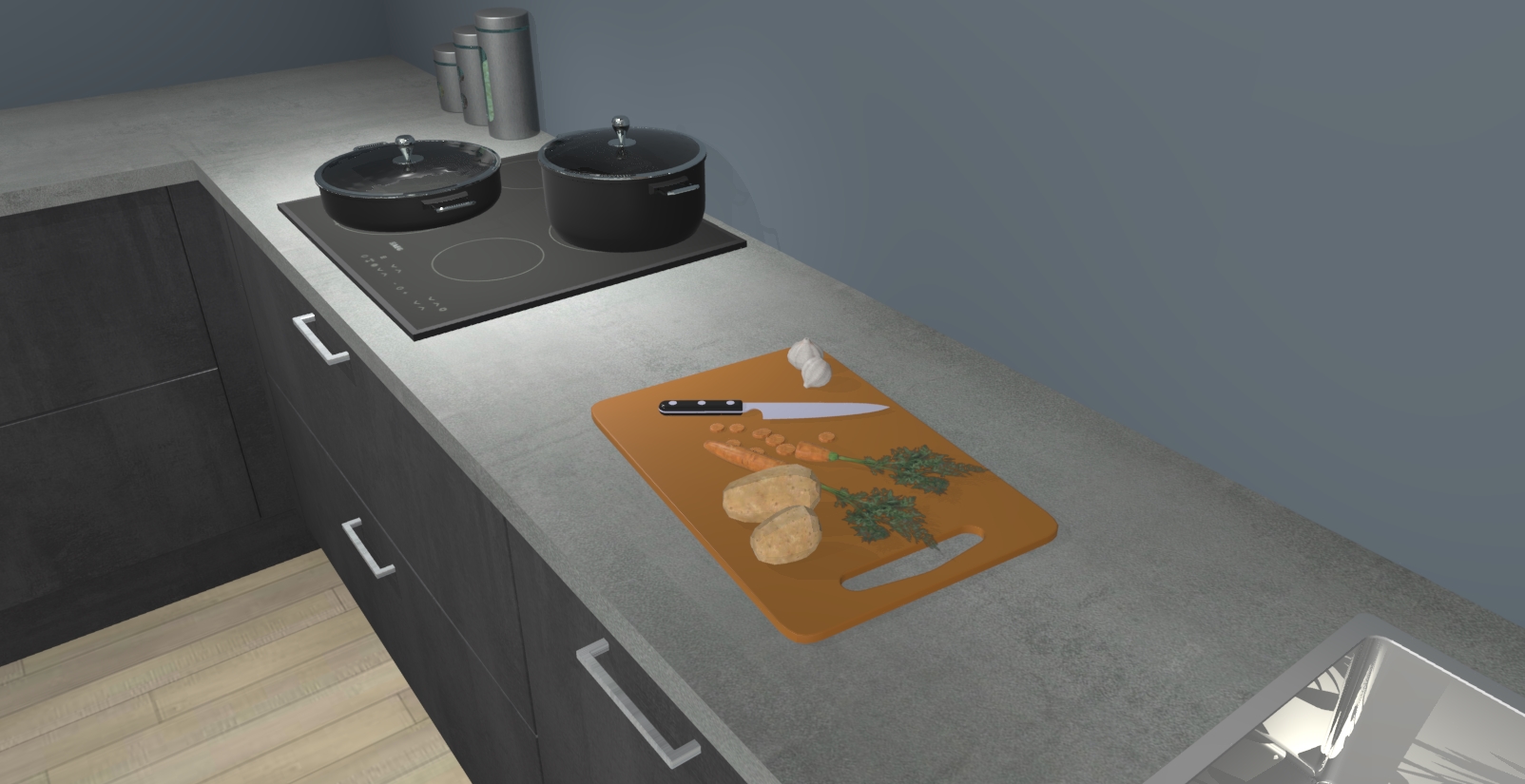 Inclusief plinten, stelpoten en werkblad
