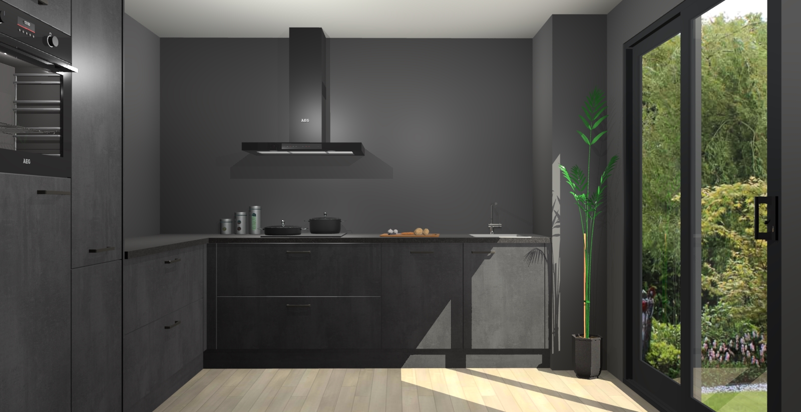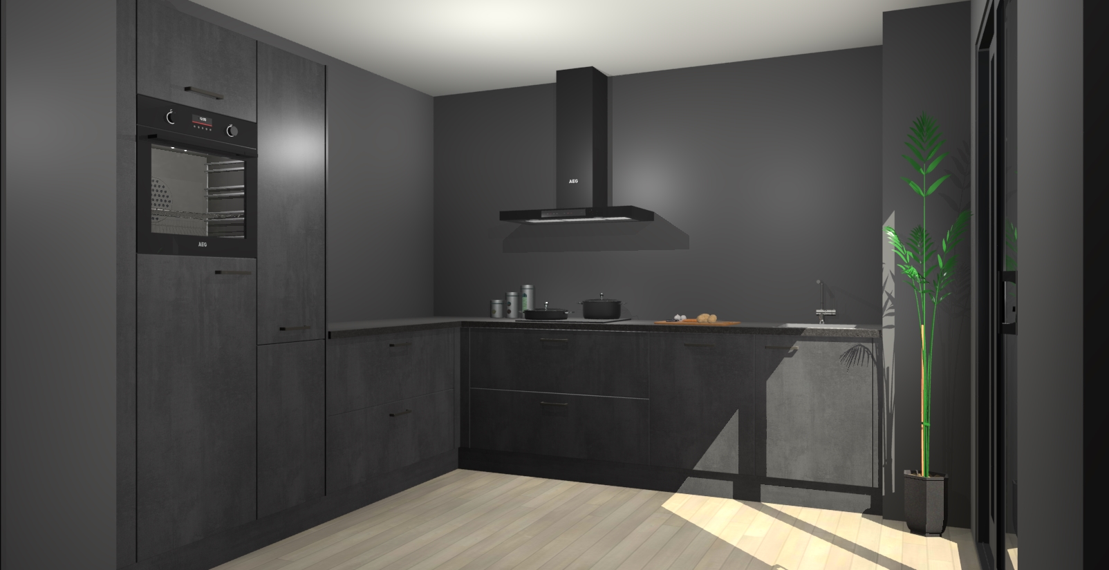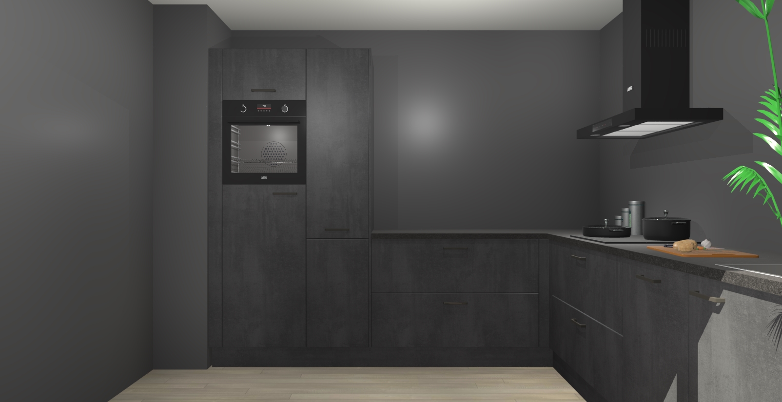 Laat u verrassen door de nieuwste en meest innovatieve keuken van dit moment: De Beton Zwarte keuken Antibes. Deze chique keuken straalt een stijlvolle sfeer uit die zeker bewondering zal oogsten bij uw gasten. Als u op zoek bent naar voldoende opbergruimte voor al uw keukengadgets en -gerei, dan is dit de perfecte oplossing. Met ingebouwde apparatuur zoals een oven, inductiekookplaat, afzuigkap, vaatwasser en koelkast! U krijgt niet alleen veel opbergruimte, maar ook een betrouwbaar soft close-deursysteem dat ervoor zorgt dat er nooit meer kastdeuren dichtslaan!