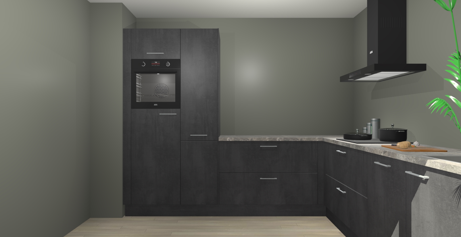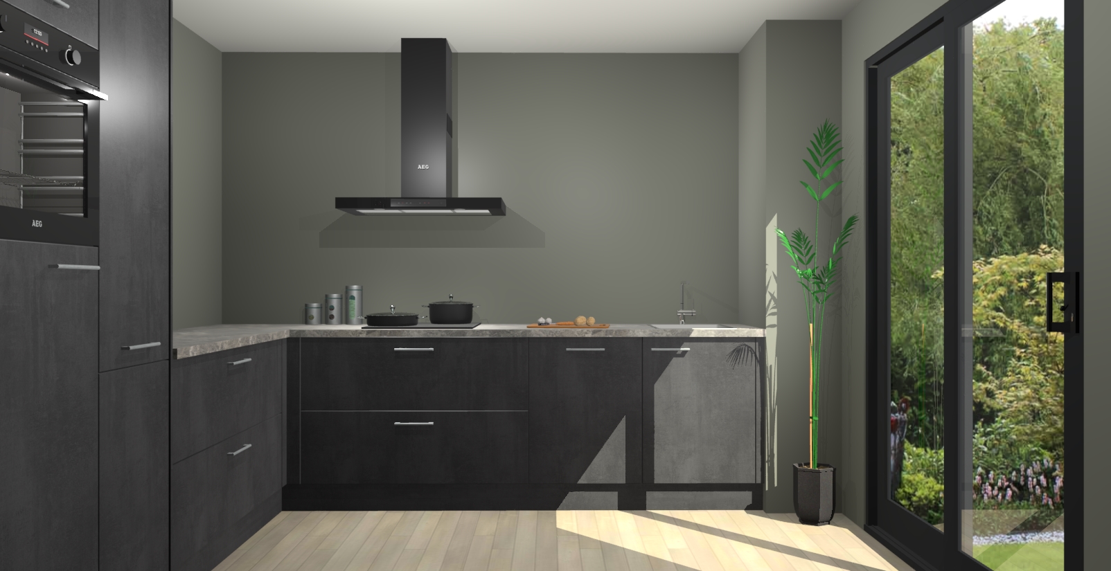 Laat u verrassen door de nieuwste en meest innovatieve keuken van dit moment: De Beton Zwarte keuken Antibes. Deze chique keuken straalt een stijlvolle sfeer uit die zeker bewondering zal oogsten bij uw gasten. Als u op zoek bent naar voldoende opbergruimte voor al uw keukengadgets en -gerei, dan is dit de perfecte oplossing. Met ingebouwde apparatuur zoals een oven, inductiekookplaat, afzuigkap, vaatwasser en koelkast! U krijgt niet alleen veel opbergruimte, maar ook een betrouwbaar soft close-deursysteem dat ervoor zorgt dat er nooit meer kastdeuren dichtslaan!