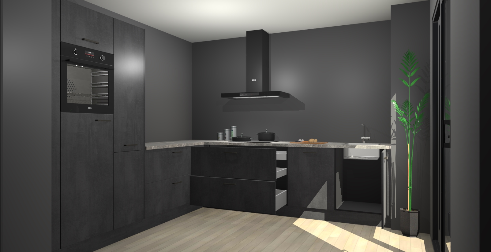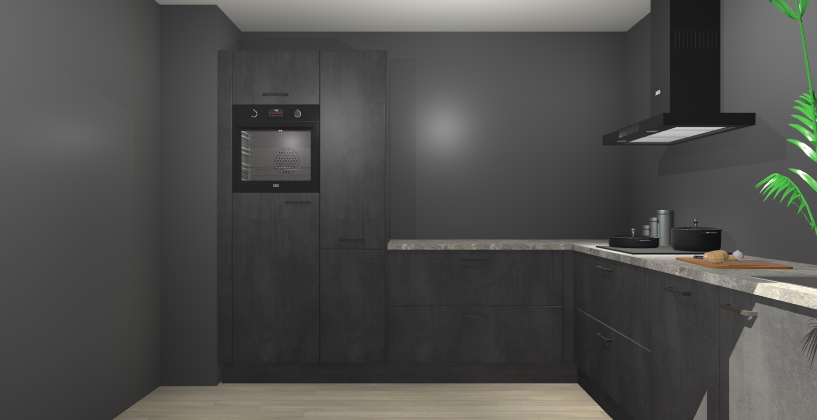 Laat u verrassen door de nieuwste en meest innovatieve keuken van dit moment: De Beton Zwarte keuken Antibes. Deze chique keuken straalt een stijlvolle sfeer uit die zeker bewondering zal oogsten bij uw gasten. Als u op zoek bent naar voldoende opbergruimte voor al uw keukengadgets en -gerei, dan is dit de perfecte oplossing. Met ingebouwde apparatuur zoals een oven, inductiekookplaat, afzuigkap, vaatwasser en koelkast! U krijgt niet alleen veel opbergruimte, maar ook een betrouwbaar soft close-deursysteem dat ervoor zorgt dat er nooit meer kastdeuren dichtslaan!