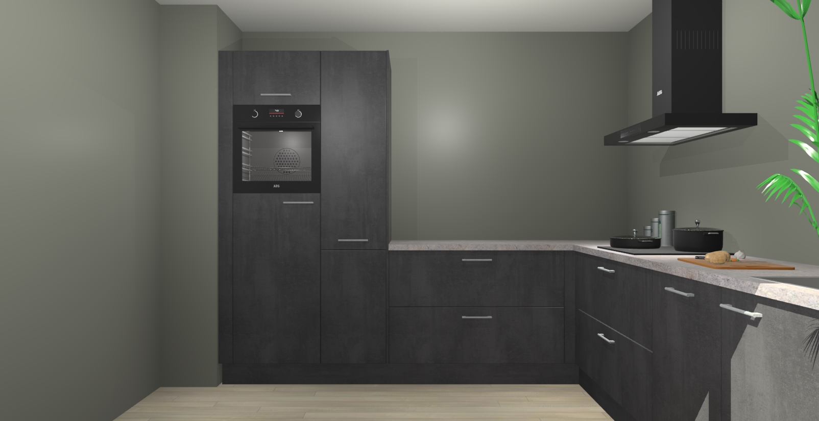 Laat u verrassen door de nieuwste en meest innovatieve keuken van dit moment: De Beton Zwarte keuken Antibes. Deze chique keuken straalt een stijlvolle sfeer uit die zeker bewondering zal oogsten bij uw gasten. Als u op zoek bent naar voldoende opbergruimte voor al uw keukengadgets en -gerei, dan is dit de perfecte oplossing. Met ingebouwde apparatuur zoals een oven, inductiekookplaat, afzuigkap, vaatwasser en koelkast! U krijgt niet alleen veel opbergruimte, maar ook een betrouwbaar soft close-deursysteem dat ervoor zorgt dat er nooit meer kastdeuren dichtslaan!