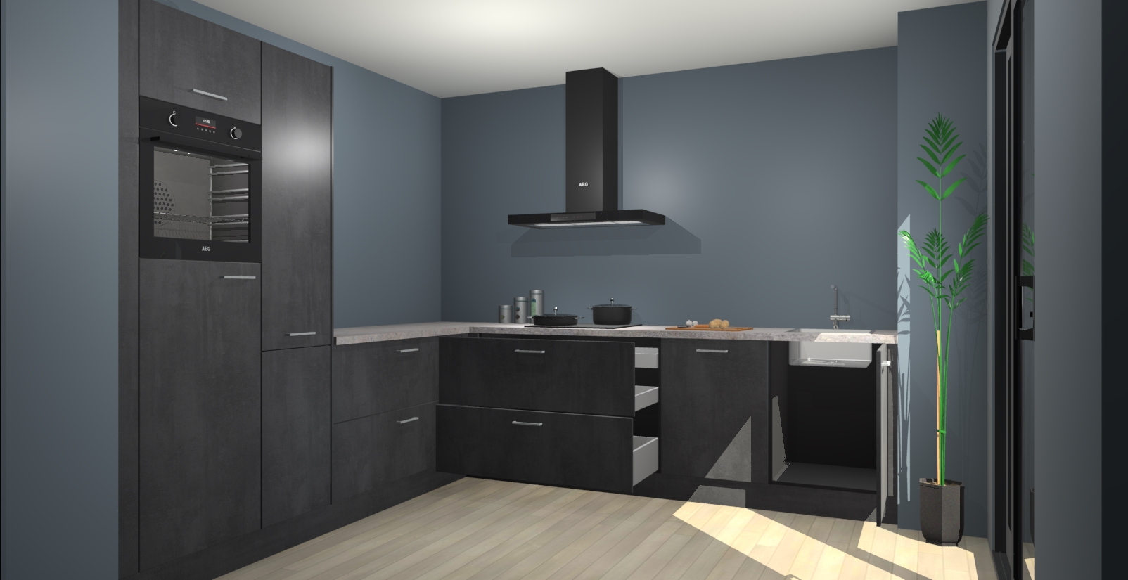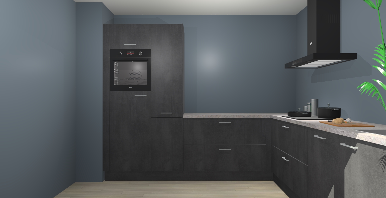 Laat u verrassen door de nieuwste en meest innovatieve keuken van dit moment: De Beton Zwarte keuken Antibes. Deze chique keuken straalt een stijlvolle sfeer uit die zeker bewondering zal oogsten bij uw gasten. Als u op zoek bent naar voldoende opbergruimte voor al uw keukengadgets en -gerei, dan is dit de perfecte oplossing. Met ingebouwde apparatuur zoals een oven, inductiekookplaat, afzuigkap, vaatwasser en koelkast! U krijgt niet alleen veel opbergruimte, maar ook een betrouwbaar soft close-deursysteem dat ervoor zorgt dat er nooit meer kastdeuren dichtslaan!