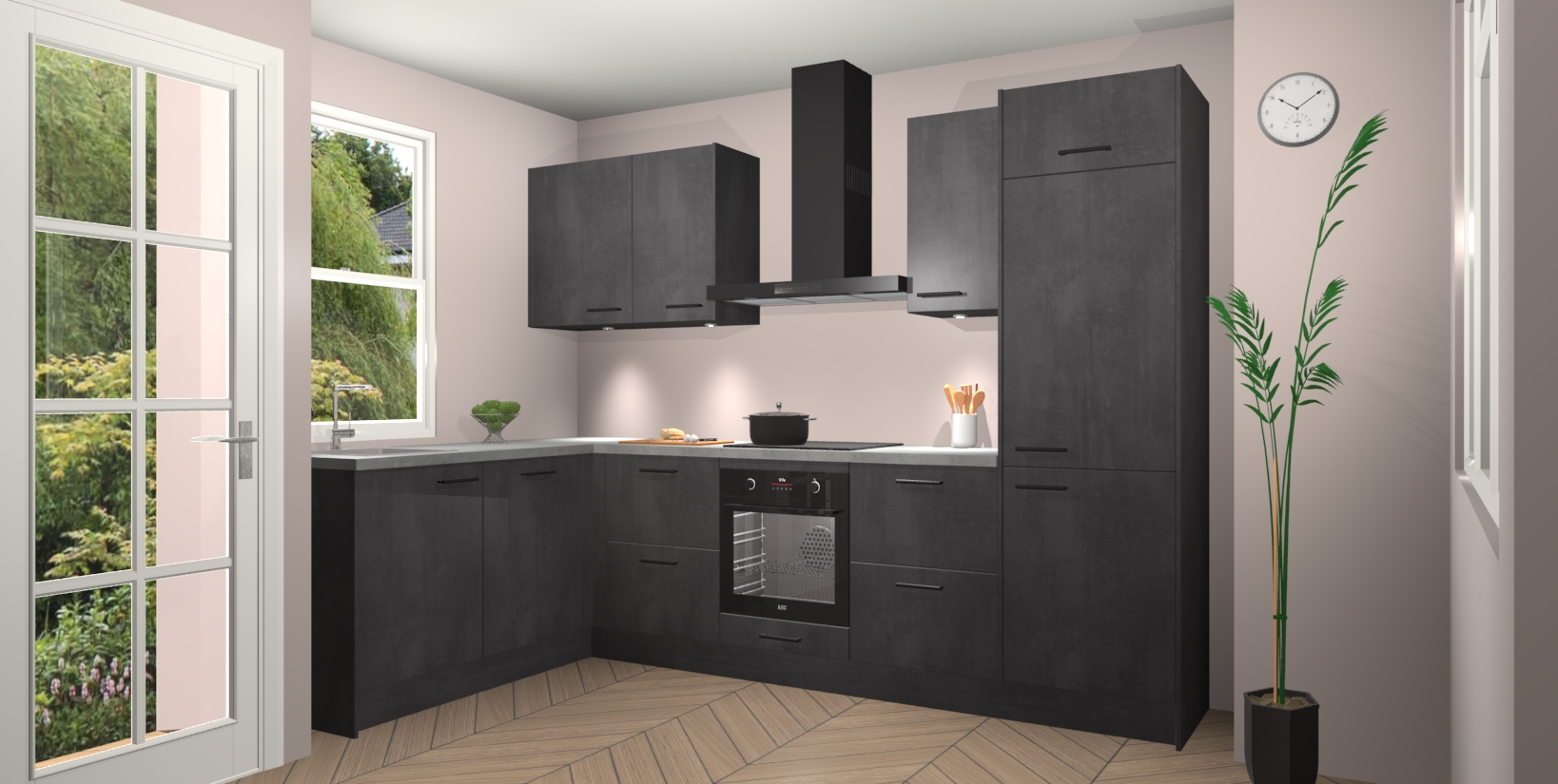 Bent u op zoek naar een strakke, moderne hoekkeuken die uw huis oppept en een moderne uitstraling geeft? Kijk dan niet verder dan de beton zwarte keuken Beijing. Deze verbluffende hoekkeuken tilt hedendaags design naar een hoger niveau. Qua stijl is deze chique hoekkeuken voorzien van beton zwarte accenten, om een strakke maar opvallende look te creëren. De binnenkant van de kasten is afgewerkt in dezelfde prachtige beton zwarte kleur voor extra esthetische aantrekkingskracht.