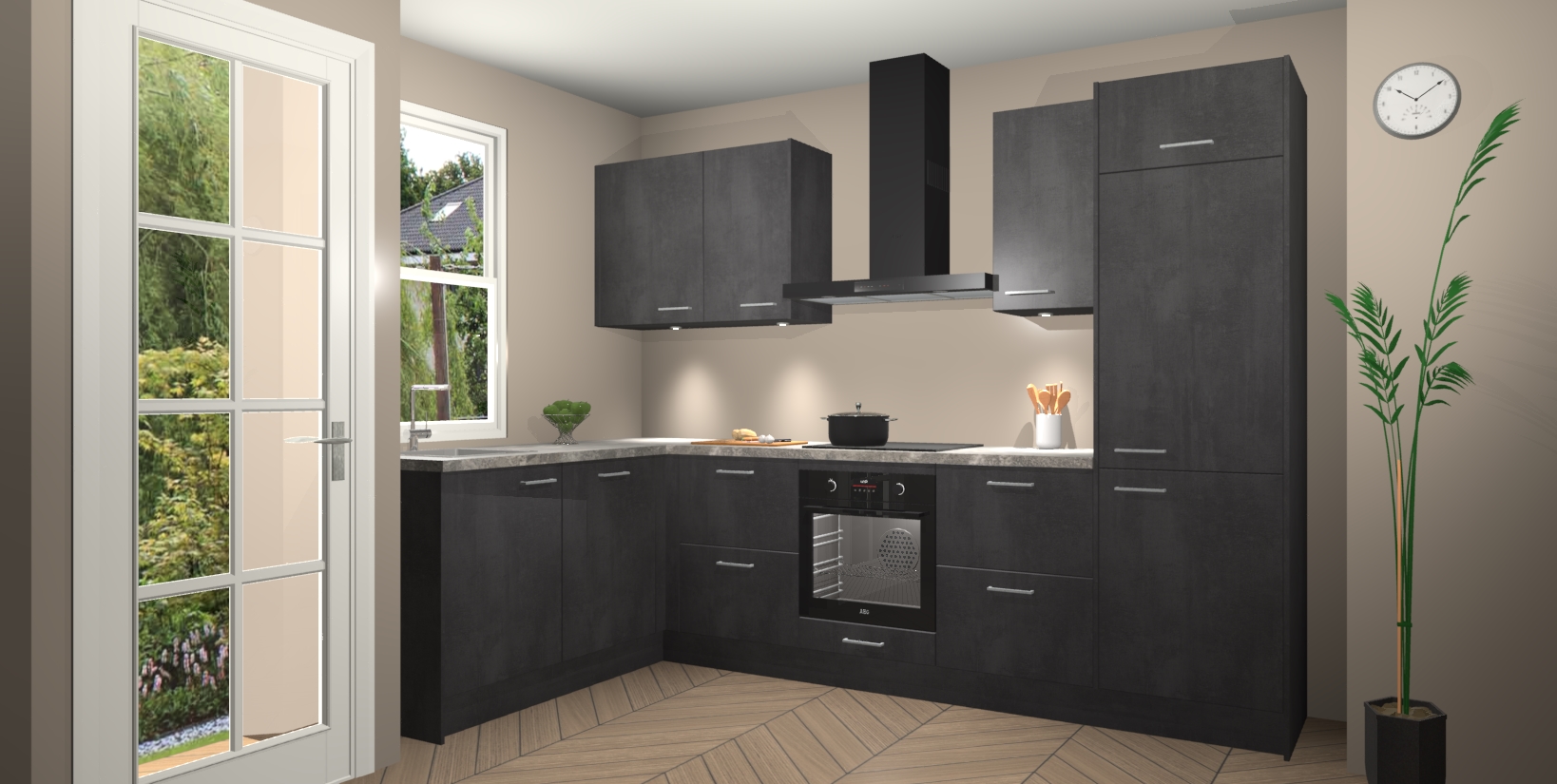 Bent u op zoek naar een strakke, moderne hoekkeuken die uw huis oppept en een moderne uitstraling geeft? Kijk dan niet verder dan de beton zwarte keuken Beijing. Deze verbluffende hoekkeuken tilt hedendaags design naar een hoger niveau. Qua stijl is deze chique hoekkeuken voorzien van beton zwarte accenten, om een strakke maar opvallende look te creëren. De binnenkant van de kasten is afgewerkt in dezelfde prachtige beton zwarte kleur voor extra esthetische aantrekkingskracht.