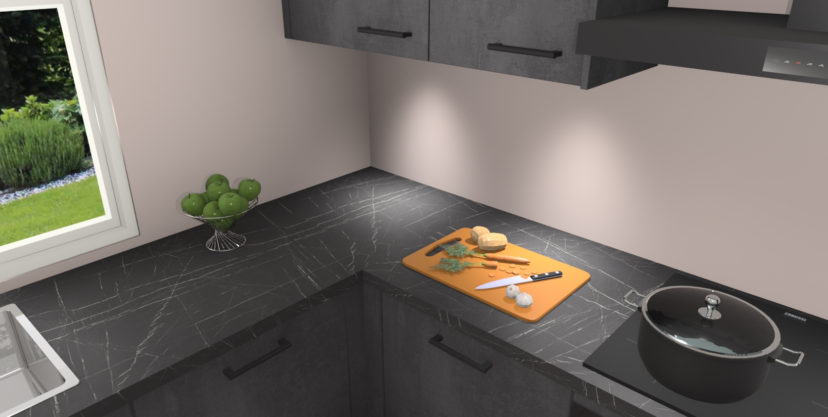 - Bij een hoekwerkblad zijn de hoeken in gevreesd en op maat gemaakt
