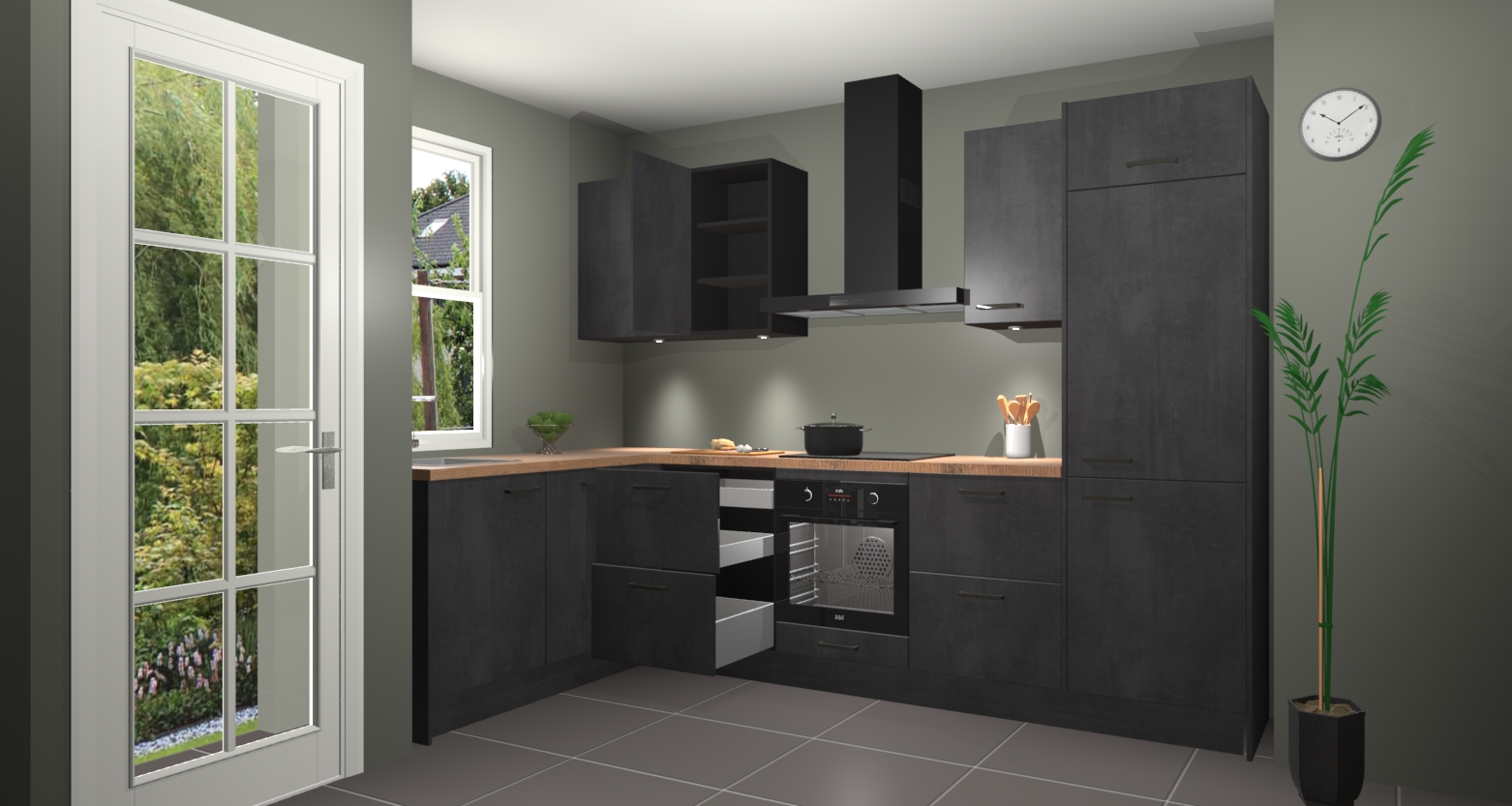Dit alles kunnen wij bieden voor één vast laag bedrag! We garanderen bovendien zeven weken leveren tijd, waardoor u sneller dan ooit gesetteld bent in eigen keukentje. Wat wilt u nog meer? Treur niet langer rond met lege muren... Haal nu de beton zwarte keuken Beijing en voeg stijl toe aan uw woning!