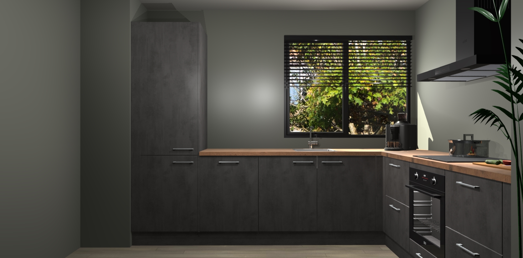 Wij presenteren de revolutie in keukens: de Beton Zwarte keuken Benidorm. Met modern design, een tijdloos uiterlijk en kasten die al voor gemonteerd worden geleverd, laat deze stijlvolle keuken uw kookervaring op een hele nieuwe manier transformeren.