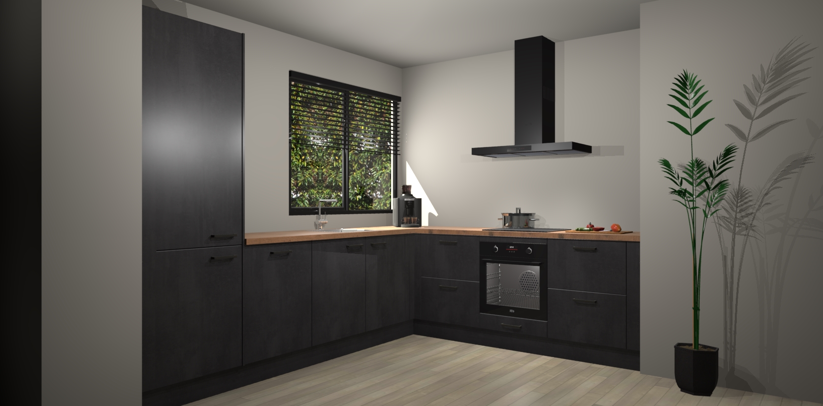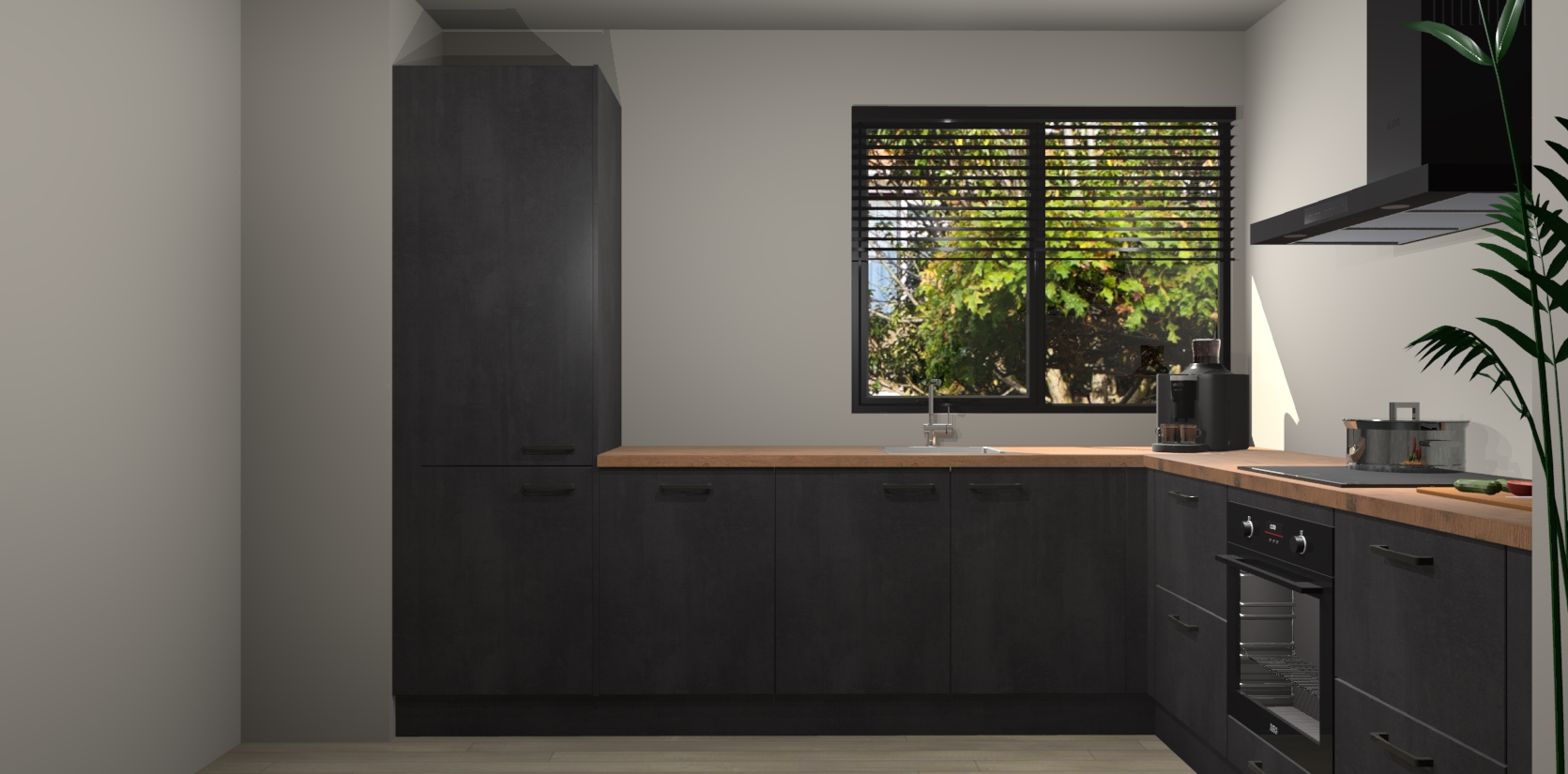 Wij presenteren de revolutie in keukens: de Beton Zwarte keuken Benidorm. Met modern design, een tijdloos uiterlijk en kasten die al voor gemonteerd worden geleverd, laat deze stijlvolle keuken uw kookervaring op een hele nieuwe manier transformeren.
