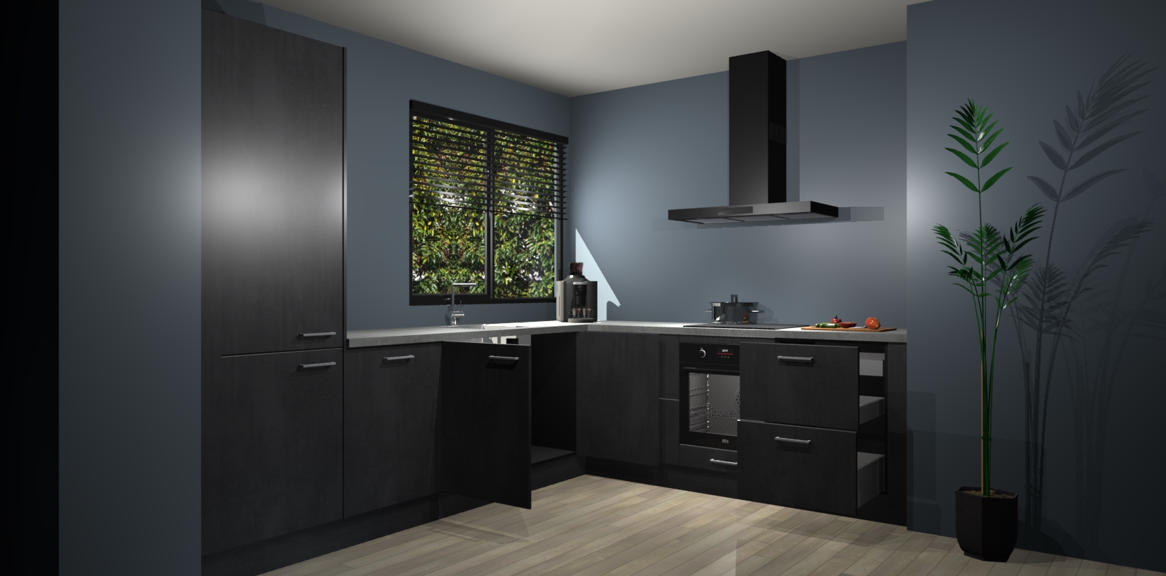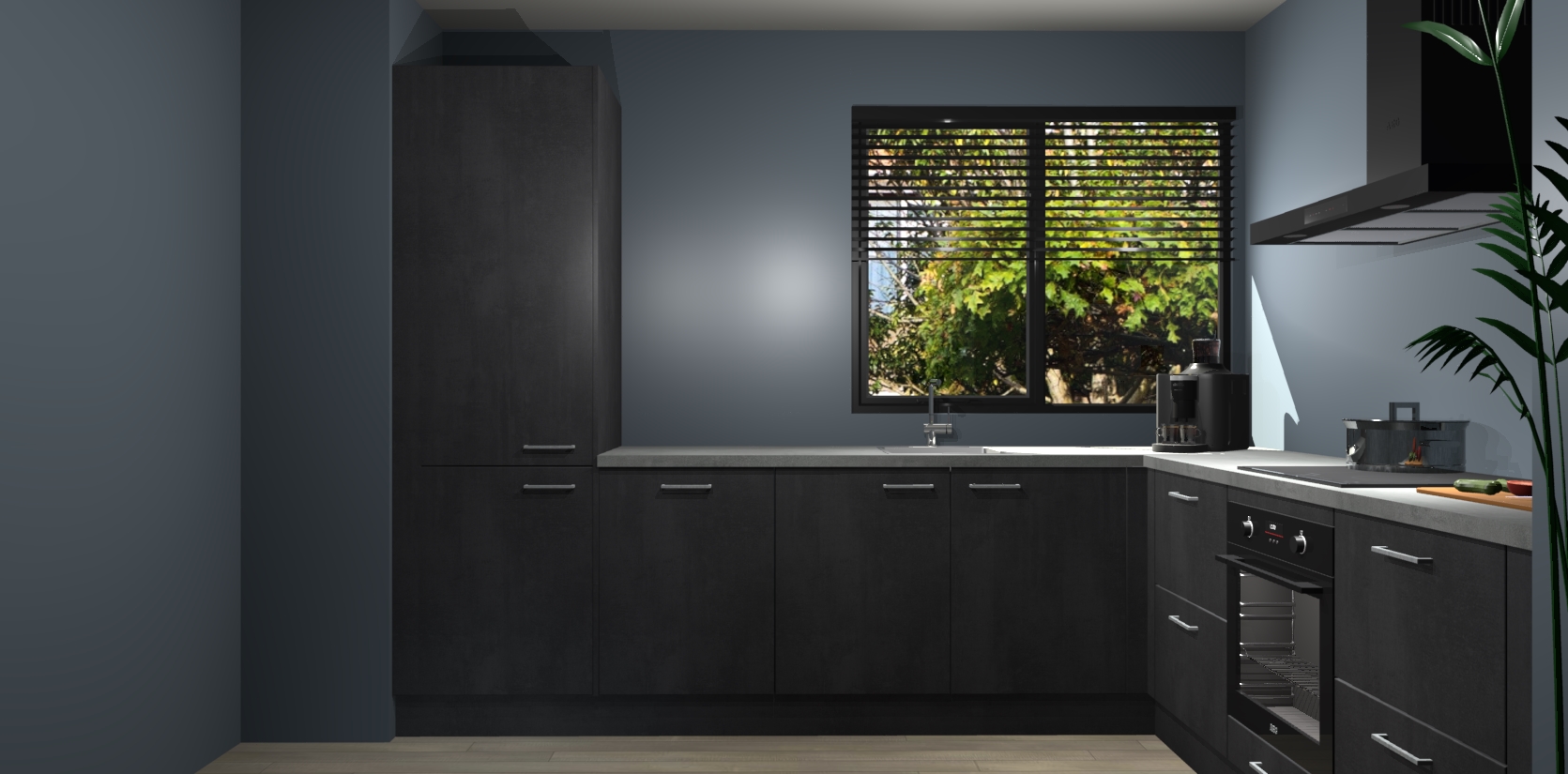 Wij presenteren de revolutie in keukens: de Beton Zwarte keuken Benidorm. Met modern design, een tijdloos uiterlijk en kasten die al voor gemonteerd worden geleverd, laat deze stijlvolle keuken uw kookervaring op een hele nieuwe manier transformeren.