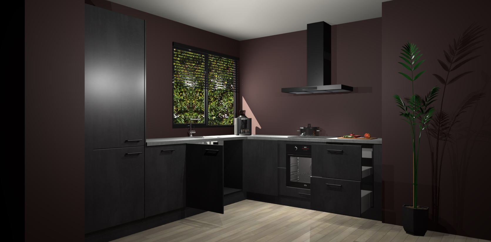 Wij presenteren de revolutie in keukens: de Beton Zwarte keuken Benidorm. Met modern design, een tijdloos uiterlijk en kasten die al voor gemonteerd worden geleverd, laat deze stijlvolle keuken uw kookervaring op een hele nieuwe manier transformeren.
