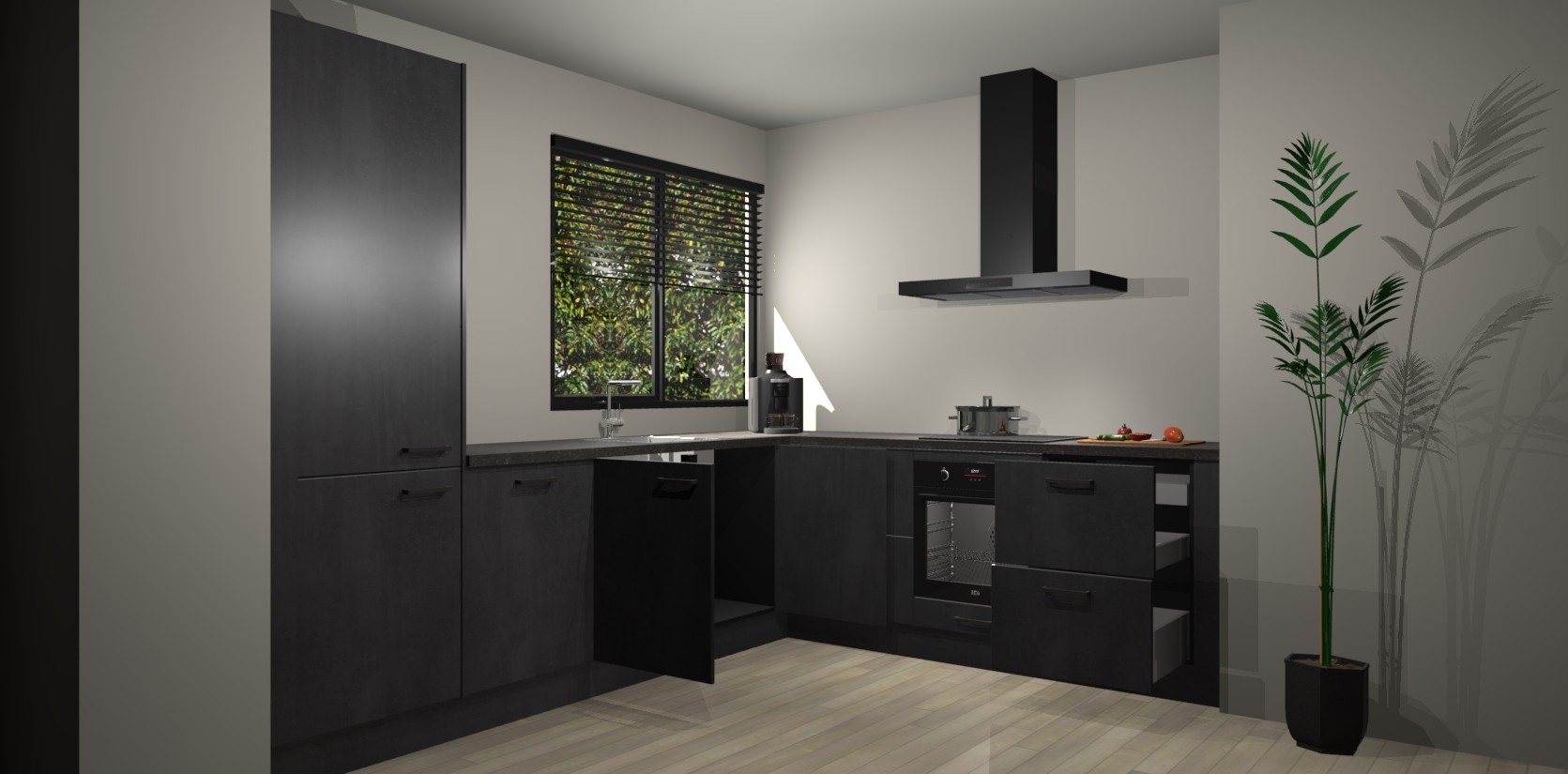 Wij presenteren de revolutie in keukens: de Beton Zwarte keuken Benidorm. Met modern design, een tijdloos uiterlijk en kasten die al voor gemonteerd worden geleverd, laat deze stijlvolle keuken uw kookervaring op een hele nieuwe manier transformeren.