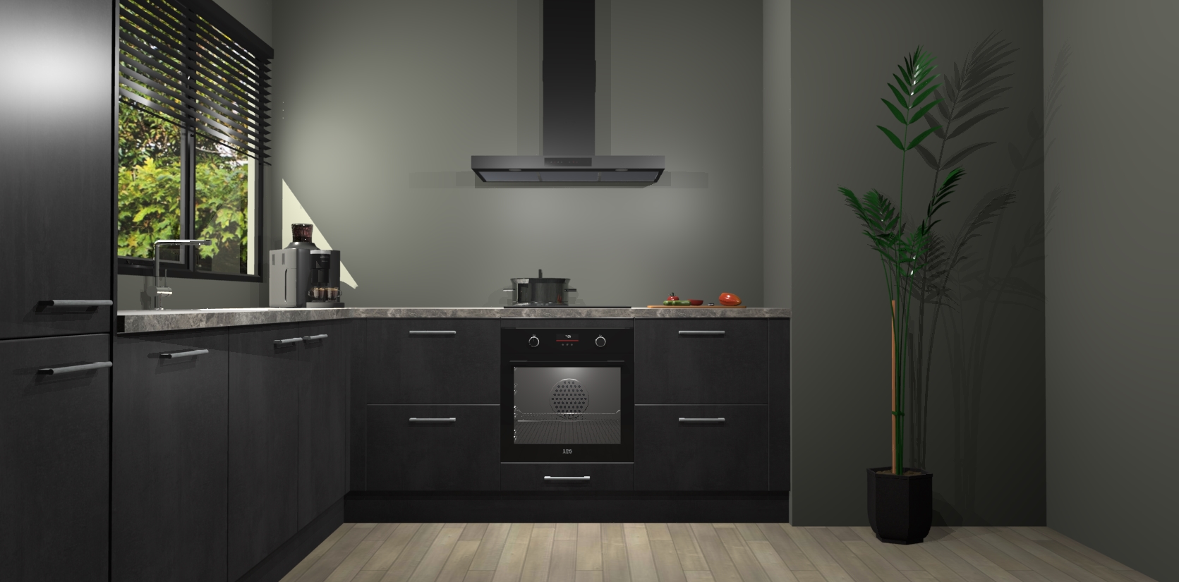 Met een modern, tijdloos design en ruime opslagruimte, zult u zich in no-time thuis voelen in uw nieuwe keuken. Uw leven wordt eenvoudiger met de soft-close deuren die voor het ultieme stille comfort zorgen - geen geluid dat u stoort terwijl u kookt. Ook is de keuken voorzien van 5 ingebouwde apparaten: een oven, inductie kookplaat, afzuigkap, vaatwasser en koelkast. Deze kunnen gemakkelijk na bestelling worden bijgewerkt naar AEG - waardoor uw luxe ervaring compleet is.
