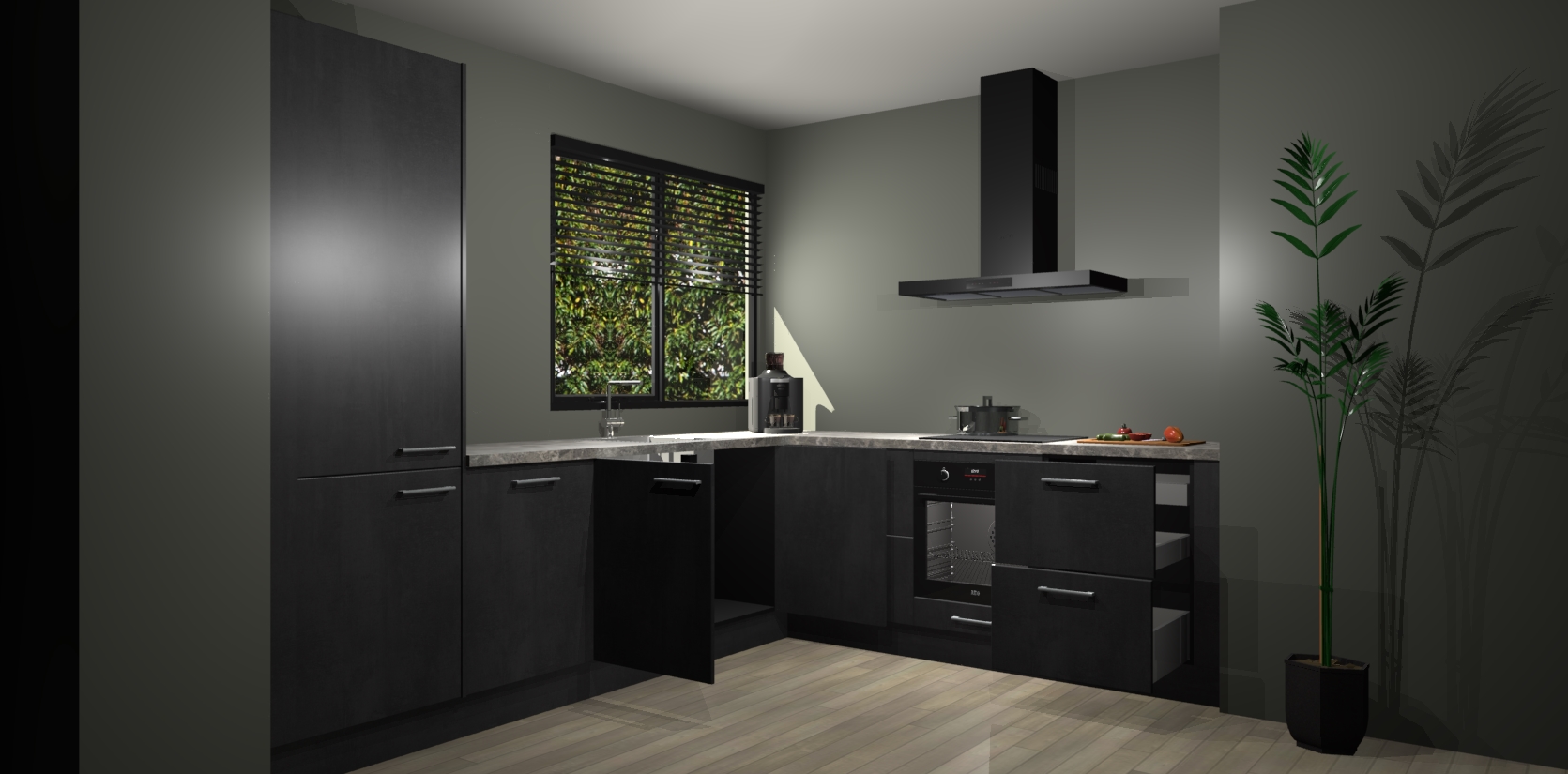 Wij presenteren de revolutie in keukens: de Beton Zwarte keuken Benidorm. Met modern design, een tijdloos uiterlijk en kasten die al voor gemonteerd worden geleverd, laat deze stijlvolle keuken uw kookervaring op een hele nieuwe manier transformeren.