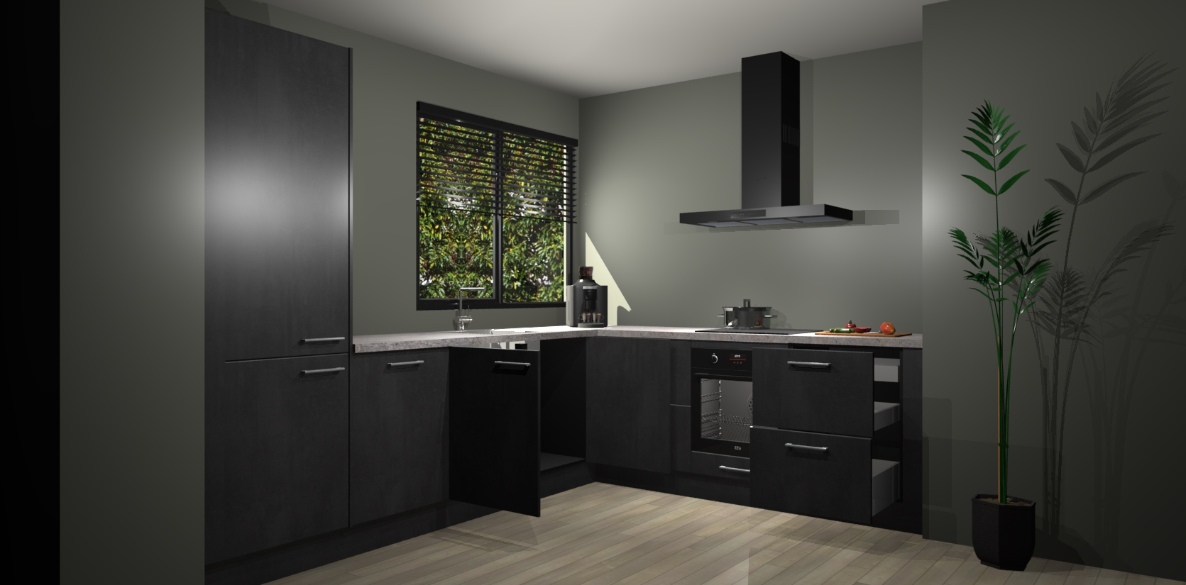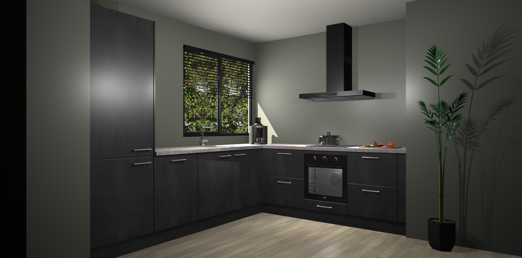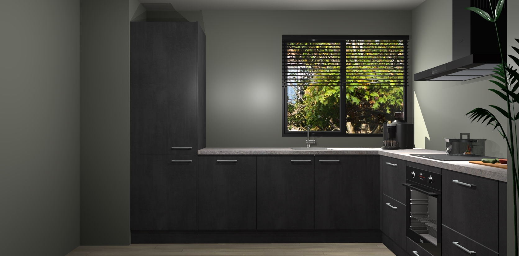 Wij presenteren de revolutie in keukens: de Beton Zwarte keuken Benidorm. Met modern design, een tijdloos uiterlijk en kasten die al voor gemonteerd worden geleverd, laat deze stijlvolle keuken uw kookervaring op een hele nieuwe manier transformeren.
