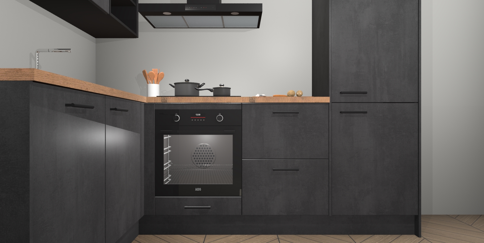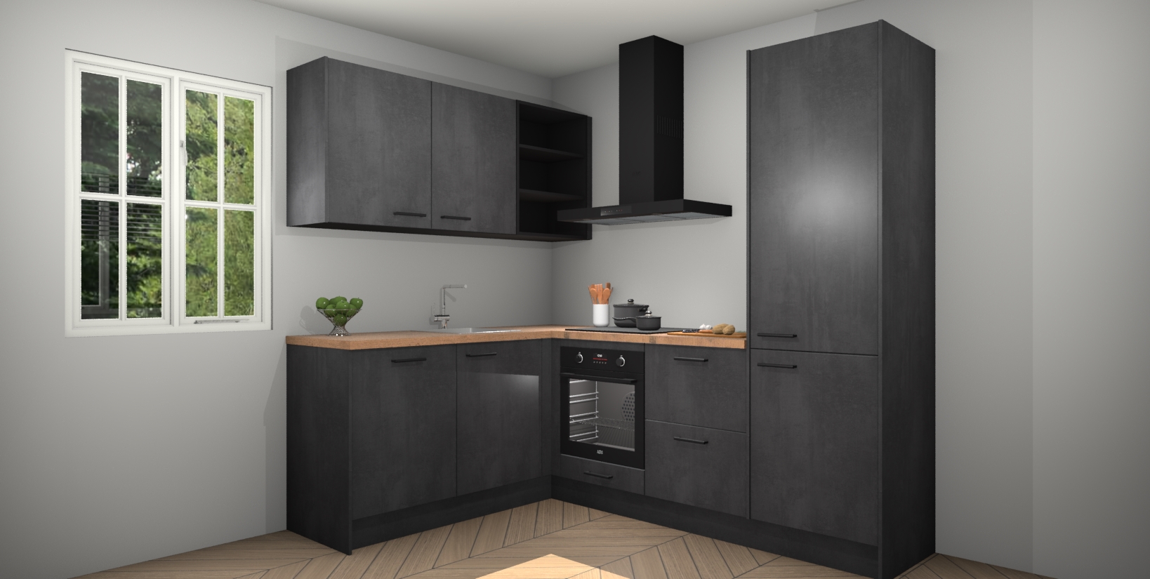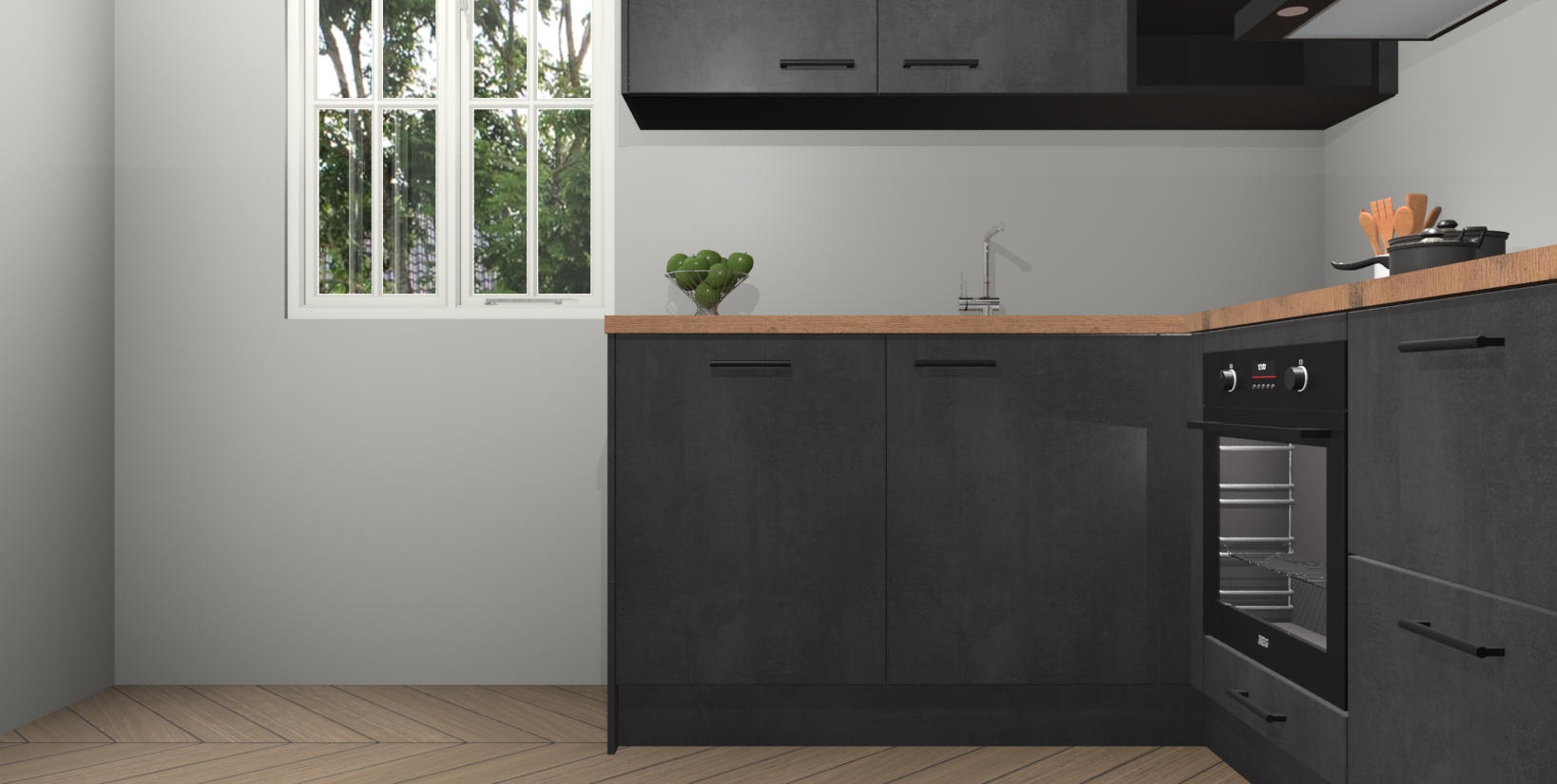 Maak kennis met de Beton Zwarte keuken Boekarest, een moderne hoekkeuken waar al uw vrienden en familie jaloers op zullen zijn! Het verbluffende mooie ontwerp past in elk interieur en is een ideale keuze voor wie op zoek is naar een klassieke, maar verfijnde look.