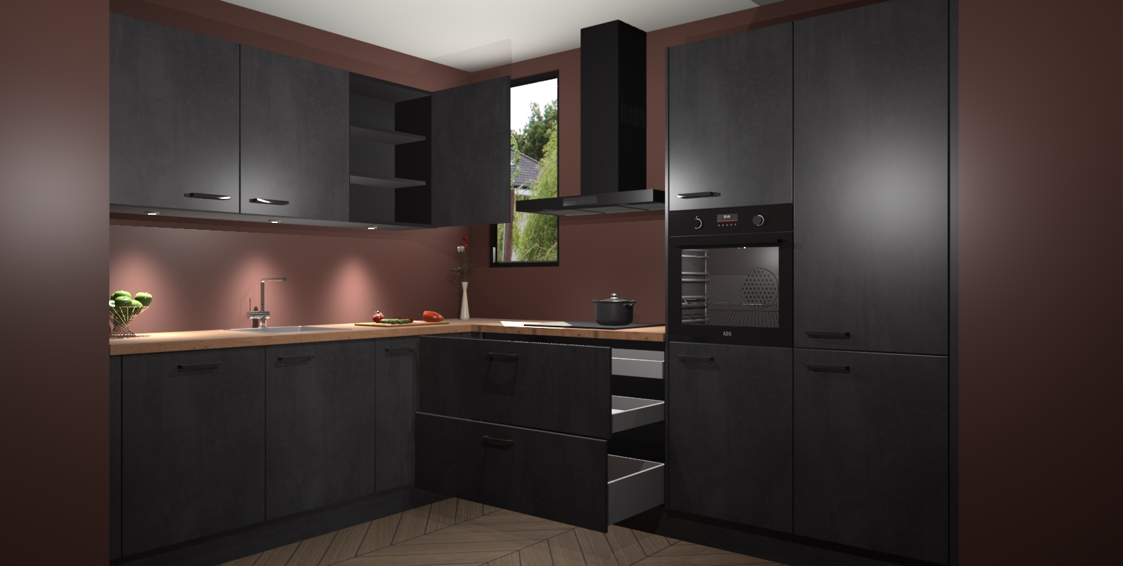 Inclusief plinten, stelpoten en werkblad