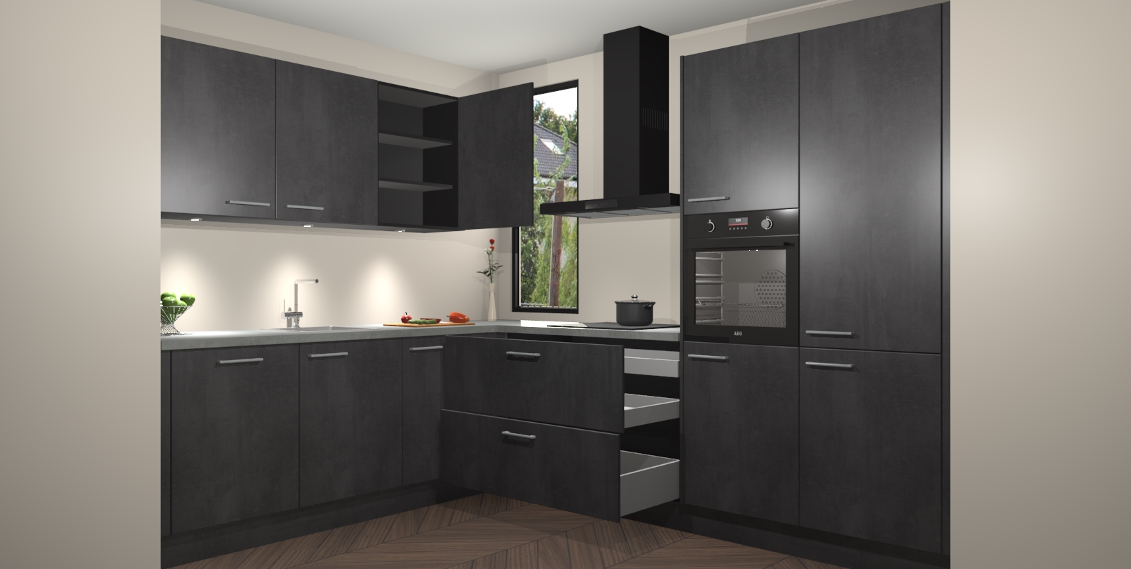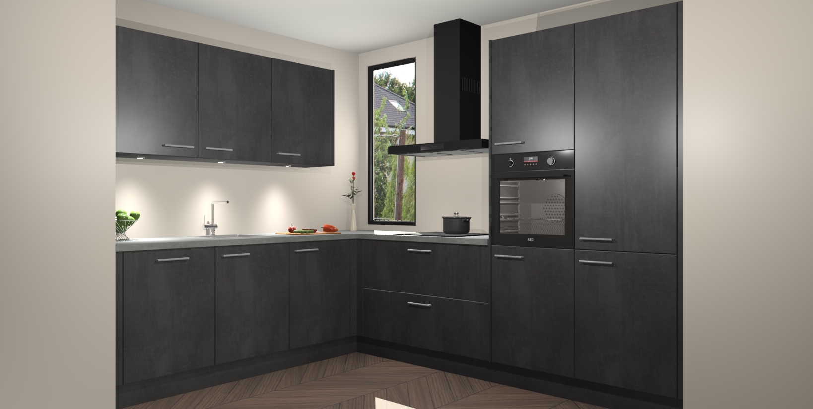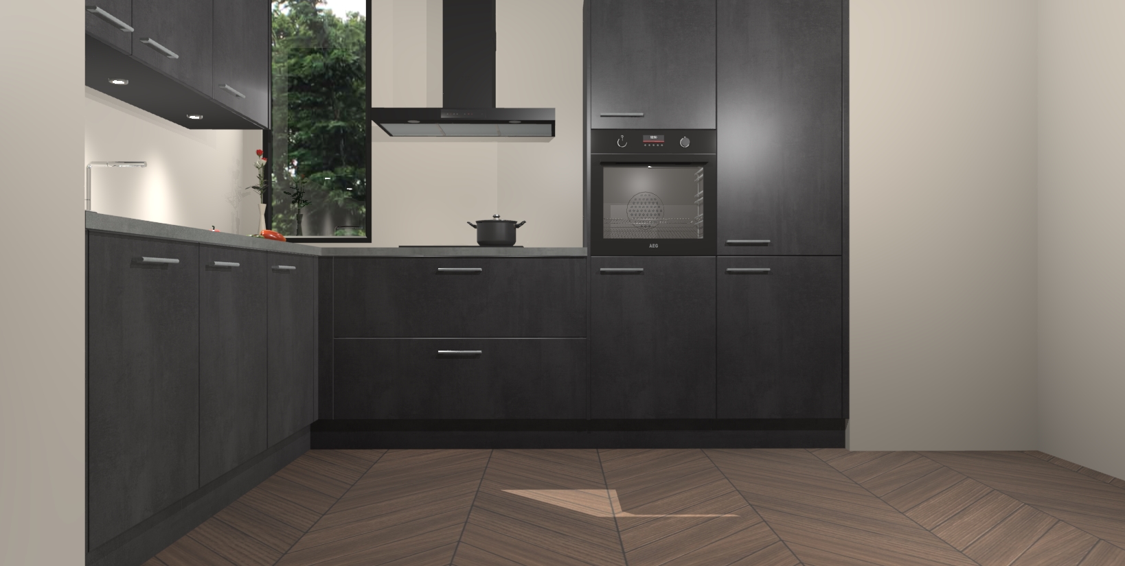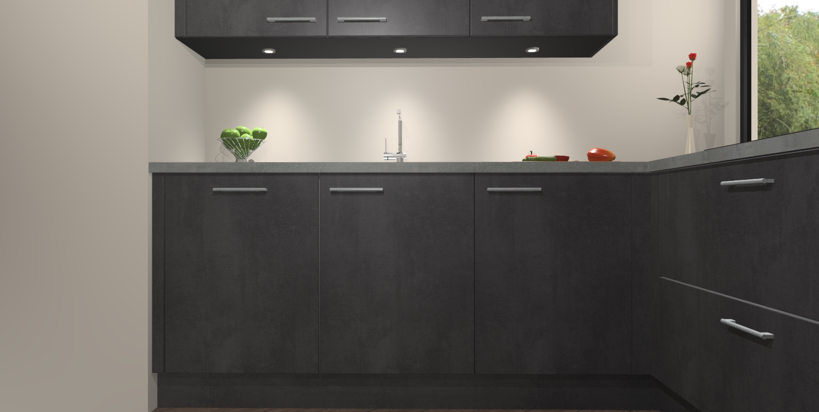Maak u keuken elegant en verfijnd met de beton zwarte keuken Buenos Aires! Dit prachtige stuk heeft warme kleuren voor een strak, modern gevoel dat u de adem zal benemen. De handgrepen heeft net als de binnenkant van de kasten dezelfde beton zwarte afwerking, waardoor alles er nog beter uitziet.