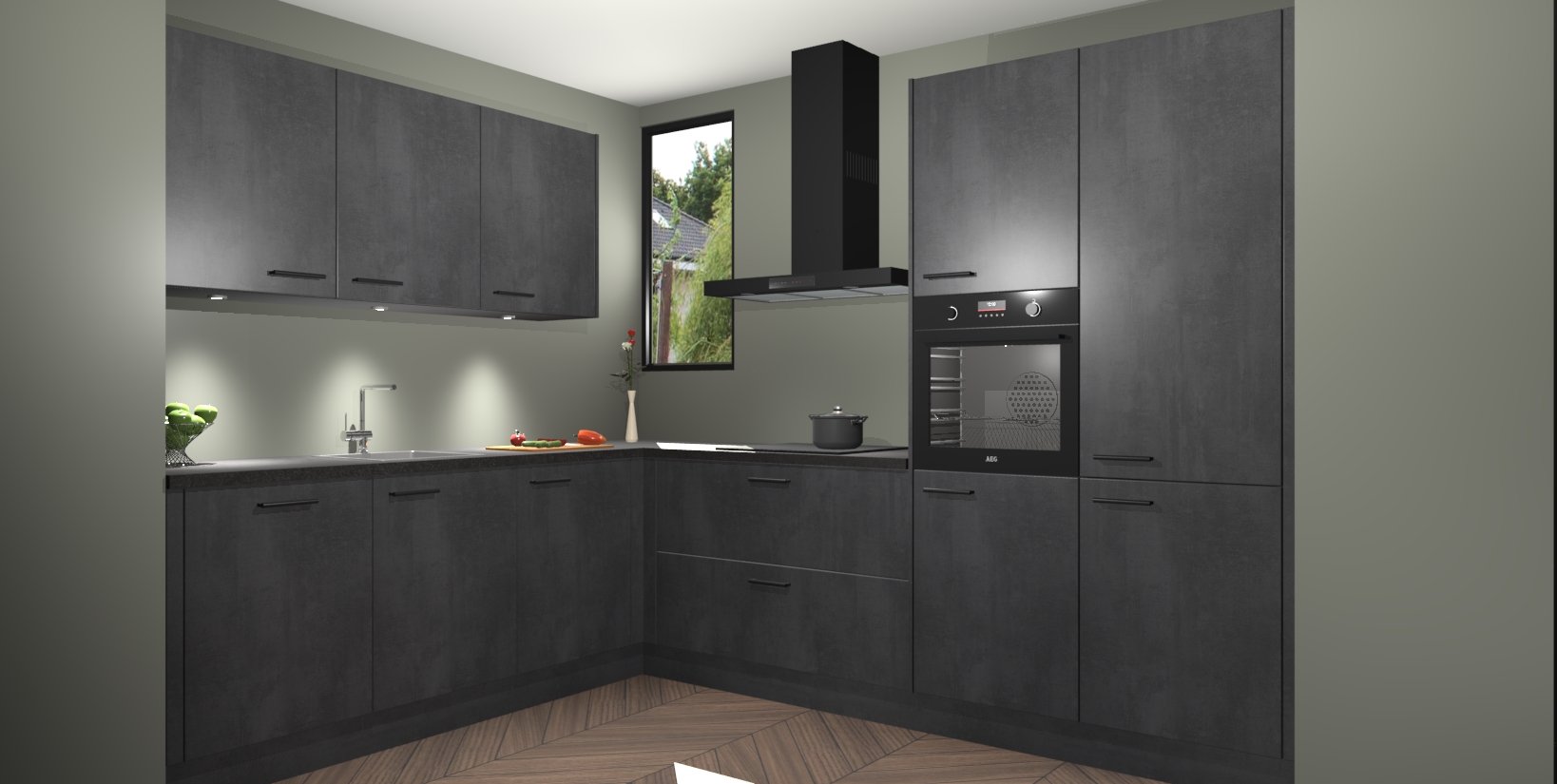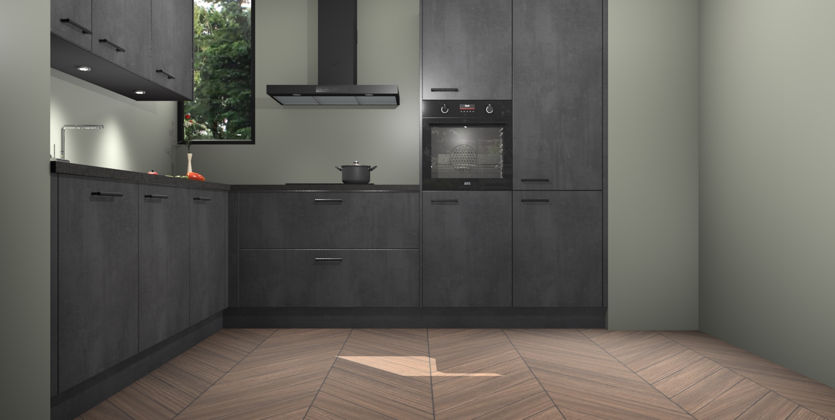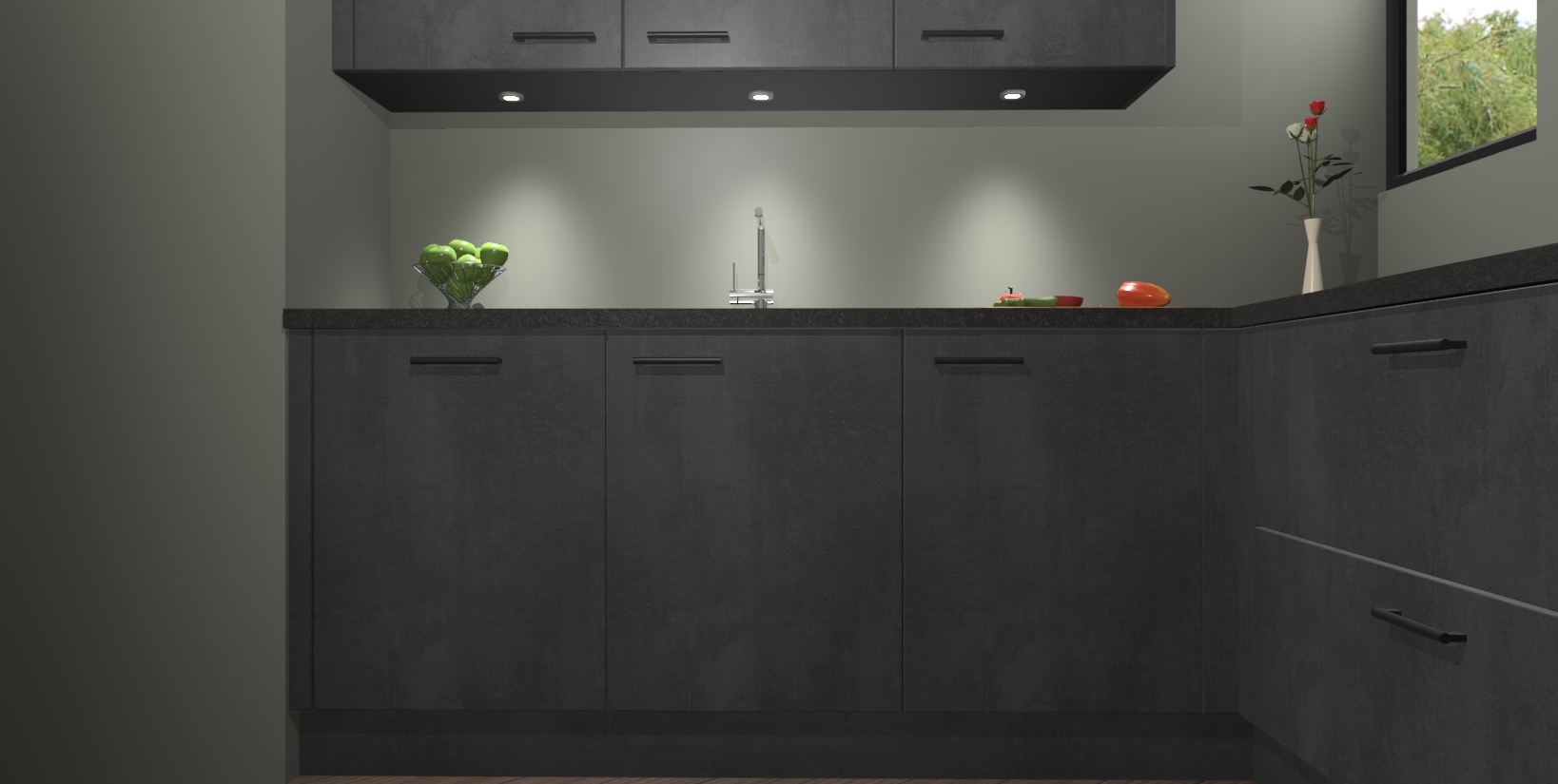 Maak u keuken elegant en verfijnd met de beton zwarte keuken Buenos Aires! Dit prachtige stuk heeft warme kleuren voor een strak, modern gevoel dat u de adem zal benemen. De handgrepen heeft net als de binnenkant van de kasten dezelfde beton zwarte afwerking, waardoor alles er nog beter uitziet.