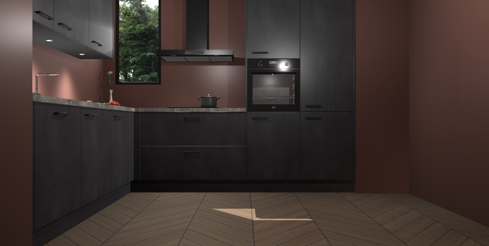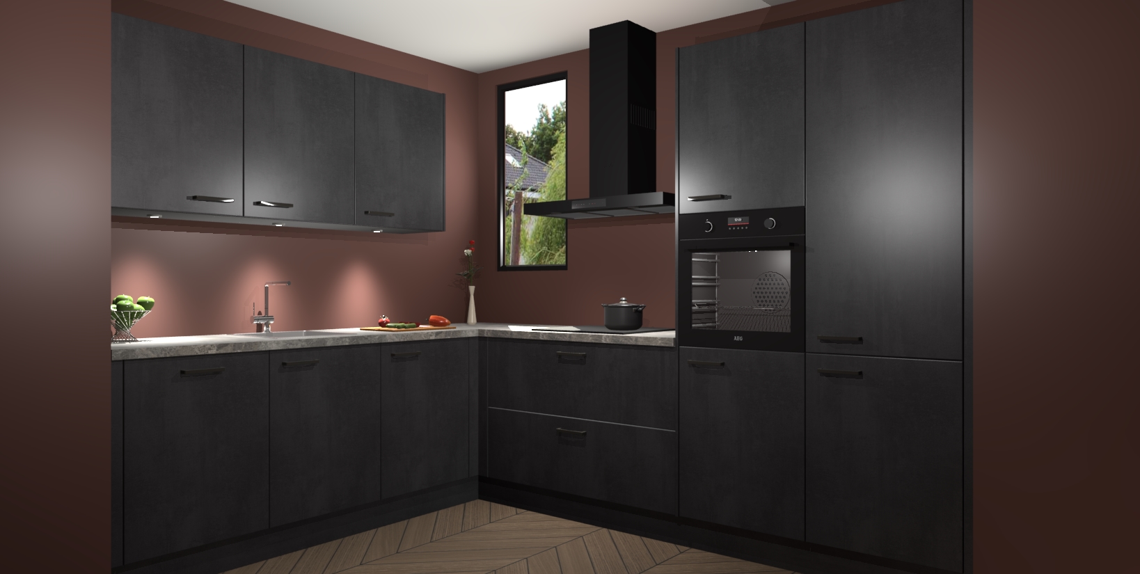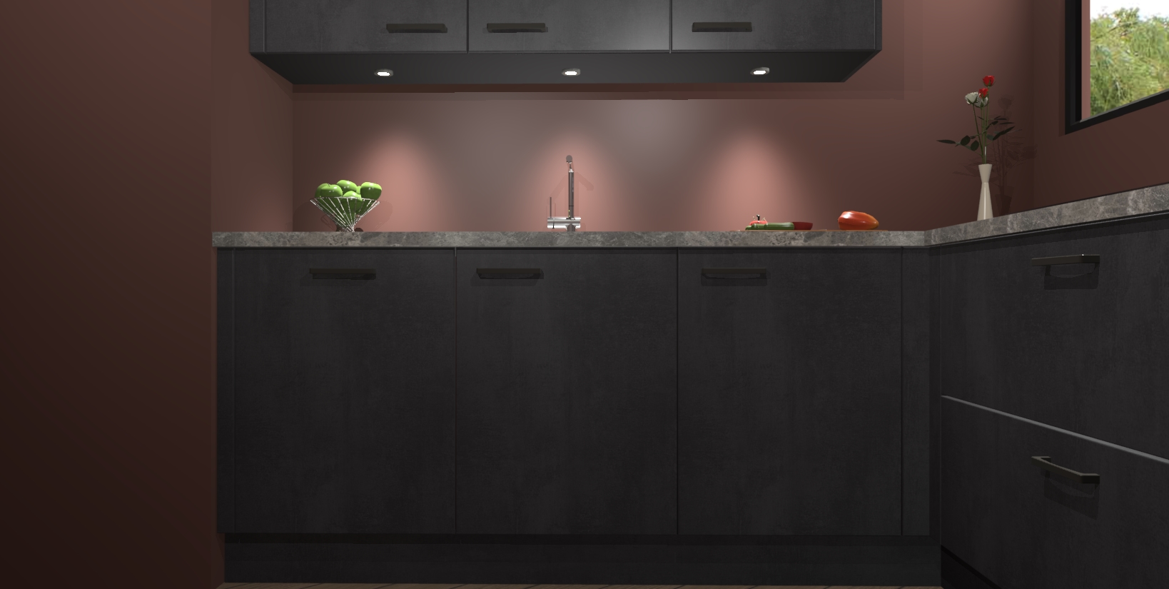 Maak u keuken elegant en verfijnd met de beton zwarte keuken Buenos Aires! Dit prachtige stuk heeft warme kleuren voor een strak, modern gevoel dat u de adem zal benemen. De handgrepen heeft net als de binnenkant van de kasten dezelfde beton zwarte afwerking, waardoor alles er nog beter uitziet.